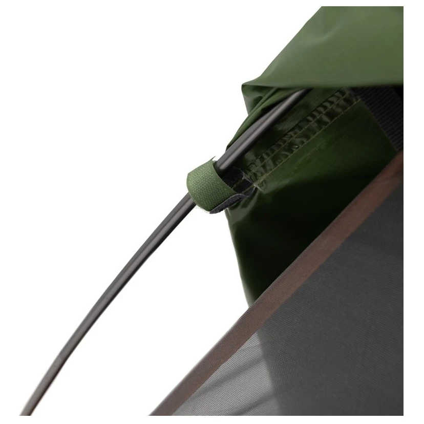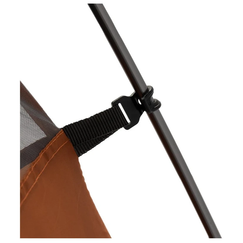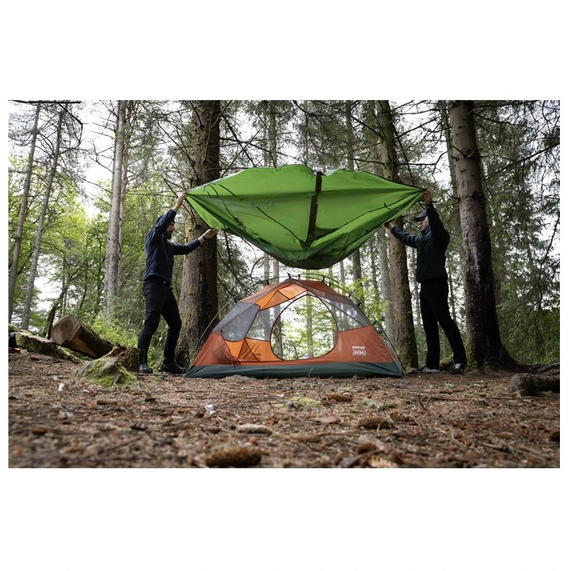 Zur Erhöhung der Stabilität bei starkem Wind ist das Zelt mit dem TBS®II-System ausgestattet, das das Gestänge an drei Punkten verstärkt und die Zeltbewegung einschränkt. Darüber hinaus verfügt das Zelt über eine hervorragende Luftzirkulation, die durch Belüftungslöcher, Moskitonetz am Eingang zum Schlafzimmer und atmungsaktives Innenzeltgewährleistet wird. Der Schlafzimmereingang hat die Form des Buchstabens „O“, sodass er sich leicht mit einer Hand öffnen und betreten lässt.