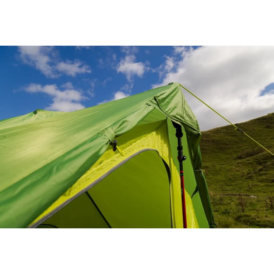 Das Außenzelt des Zeltes besteht aus recyceltem Polyester Protex® Eco 70D, das sich durch seine Haltbarkeit und Zuverlässigkeit auszeichnet. Schutz vor widrigen Witterungsbedingungen wird durch eine Wassersäule von 3000 mm und vollständig verschweißte Nähte gewährleistet. Zum Aufbau des Zeltes können Sie dann 2 Wanderstöcke (nicht im Lieferumfang enthalten) verwenden. Bei Ihren Expeditionen werden Sie sicherlich den Vorraum zu schätzen wissen, in dem Sie nasse Kleidung und Schuhe verstauen können.