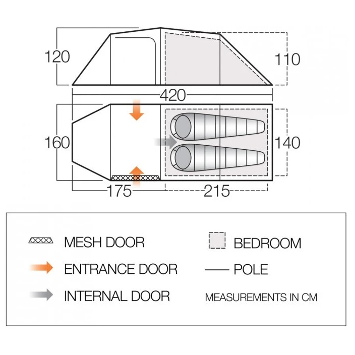 Es wird vor allem bei Familienzelten verwendet, bei denen der Schwerpunkt auf nutzbarem Raum und Komfort liegt. Mehr Schlafzimmer bedeuten mehr Privatsphäre und mehr Vielfalt im Innenraum.