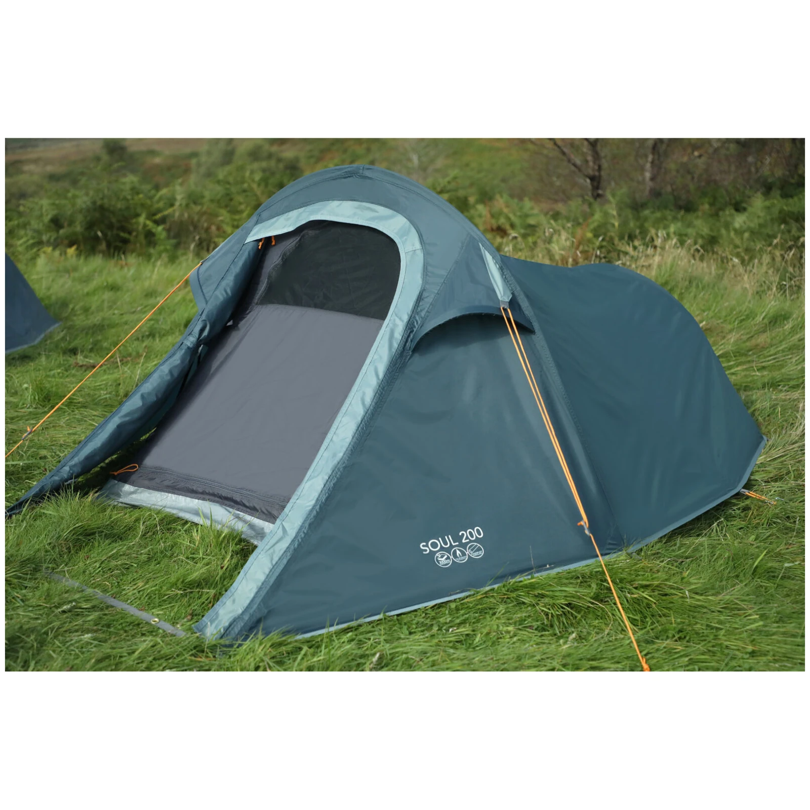 Der Hauptvorteil des Campingzeltes Soul 200 der Marke Vango ist sein geringes Gewicht und sein angemessener Preis. Dank der Tunnelkonstruktion ist ein sehr schneller Aufbau möglich, den du bei widrigen Bedingungen zu schätzen wissen wirst. Das Zeltdach besteht aus langlebigem und zuverlässigem Vango Protex® 70D Polyester, das eine Wassersäule von 3000 mmaufweist. Das Innenzelt besteht aus atmungsaktivem Polyester, das dank Lights Out -Technologie einen ruhigen Schlaf auch bei Sonnenaufgang ermöglicht. DasInnenzelt kann an heißen Sommertagen auch separat verwendet werden.