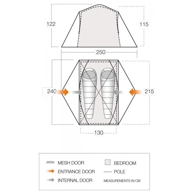 Das Tryfan 200 Zwei-Personen-Campingzelt der Marke Vango verfügt über einen geräumigen Innenraum und eine sehr gute Belüftung. Dafür sorgen zwei extra große Seitenlüftungen und eine Netztür. Der Innenteil wird zuerst aufgebaut, sodass er bei heißem Wetter separat verwendet werden kann. Der Zugang zum Zelt erfolgt über 2 große Eingänge, die gleichzeitig als Ablagefläche für Gepäck dienen können. Die großen Seitenöffnungen können vollständig geöffnet oder geschlossen werden, wodurch das Zelt sowohl für wärmere Regionen als auch für Reisen in Großbritannien geeignet ist.