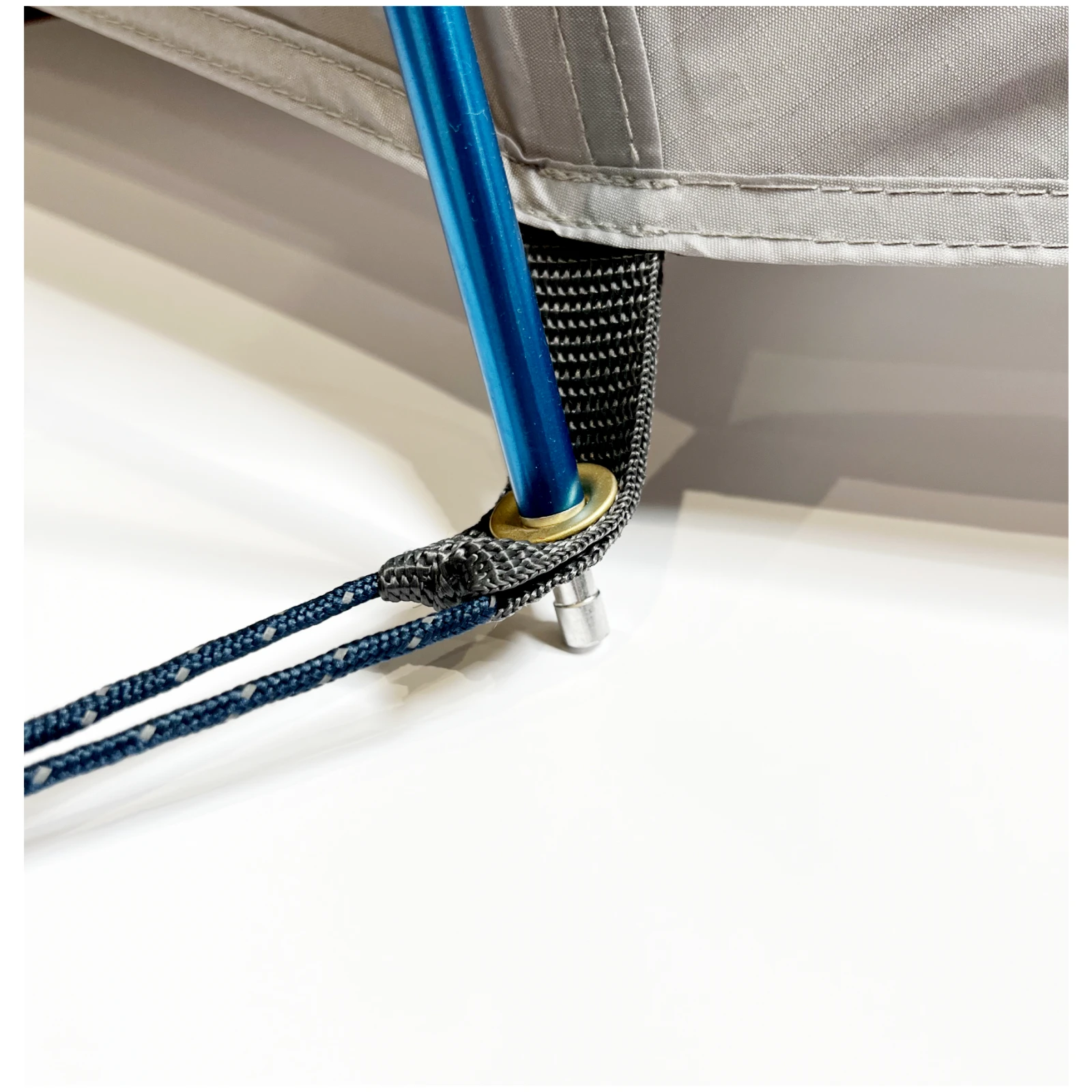 Durch die graue Farbe werden die Sonnenstrahlen besser reflektiert und das Zelt überhitzt nicht, was neben einem höheren Wohnkomfort im Inneren auch die Lebensdauer des Planenmaterials verlängert. Sicherlich wirst du auch weitere praktische Details zu schätzen wissen, die das Campen noch angenehmer machen, wie zum Beispiel die Seitentasche für Kleinteile oder die nachleuchtenden Ankerschnüre, die für eine gute Sichtbarkeit des Zelts bei Nacht sorgen.
