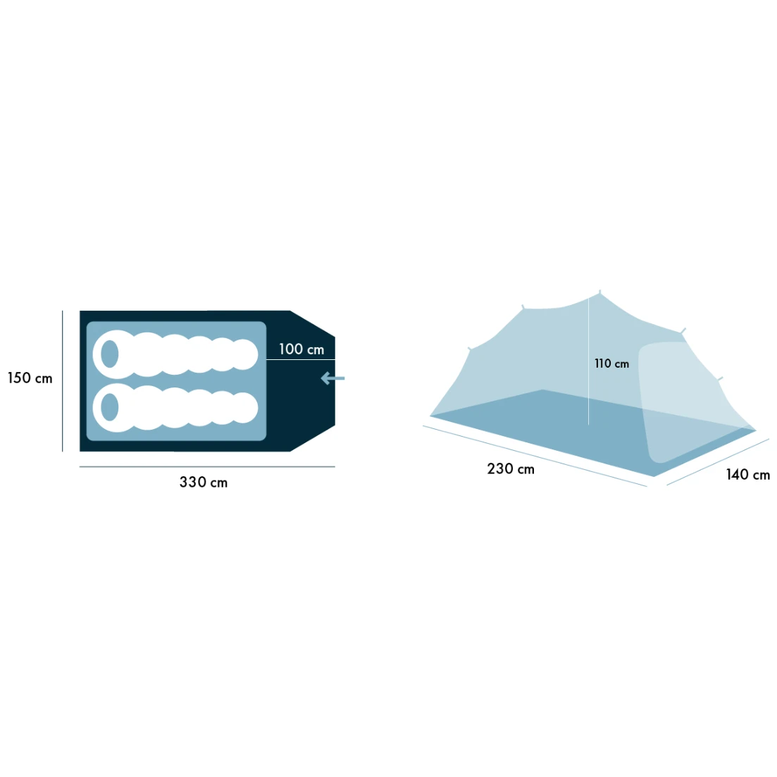 Die Wassersäule der Plane beträgt 6000 mm und beim Polyesterboden mit Polyurethan-Beschichtung 10.000 mm. Das Zelt Warg Aura 2 ist eine großartige Wahl zum Wandern, Radfahren, Wassersport und Festivals.