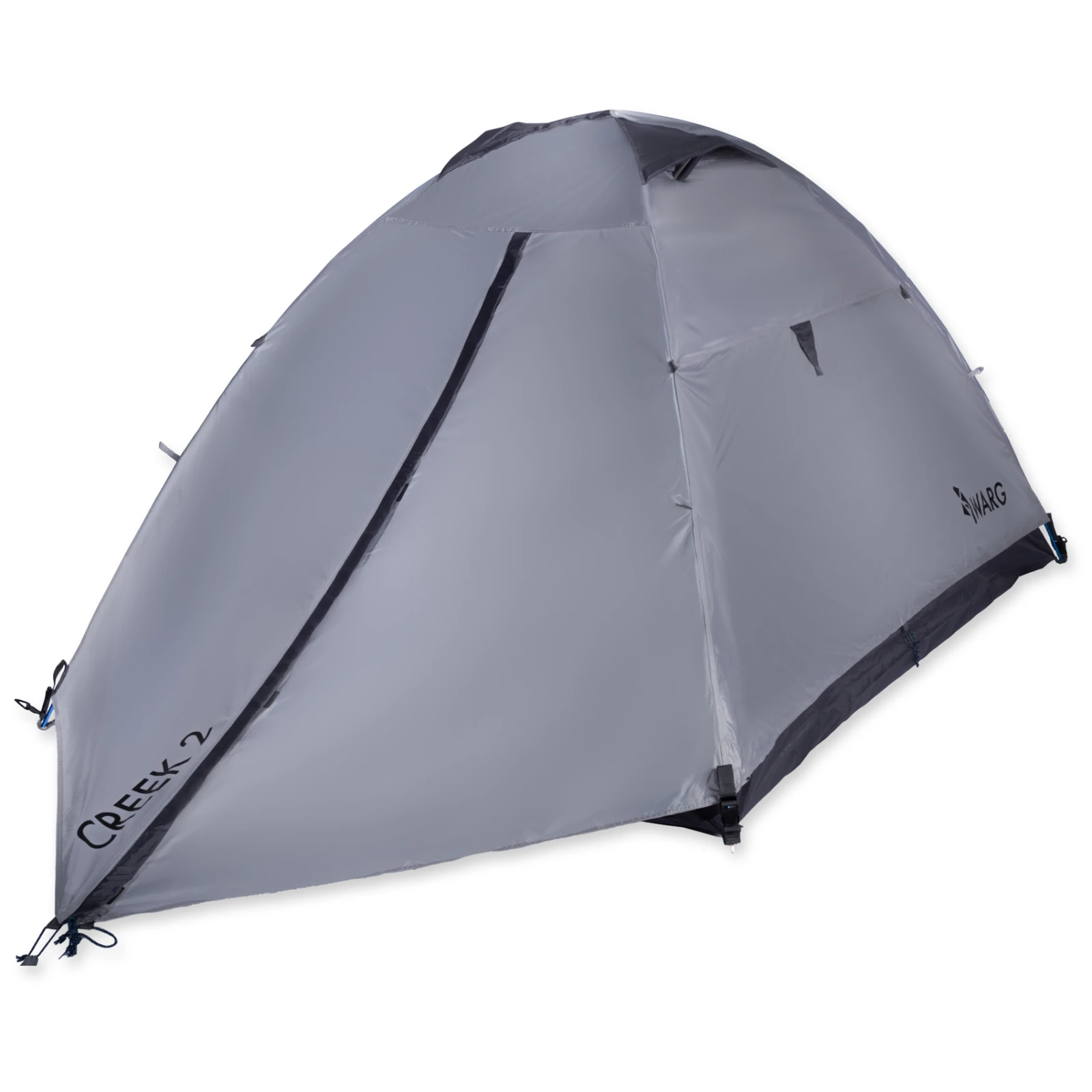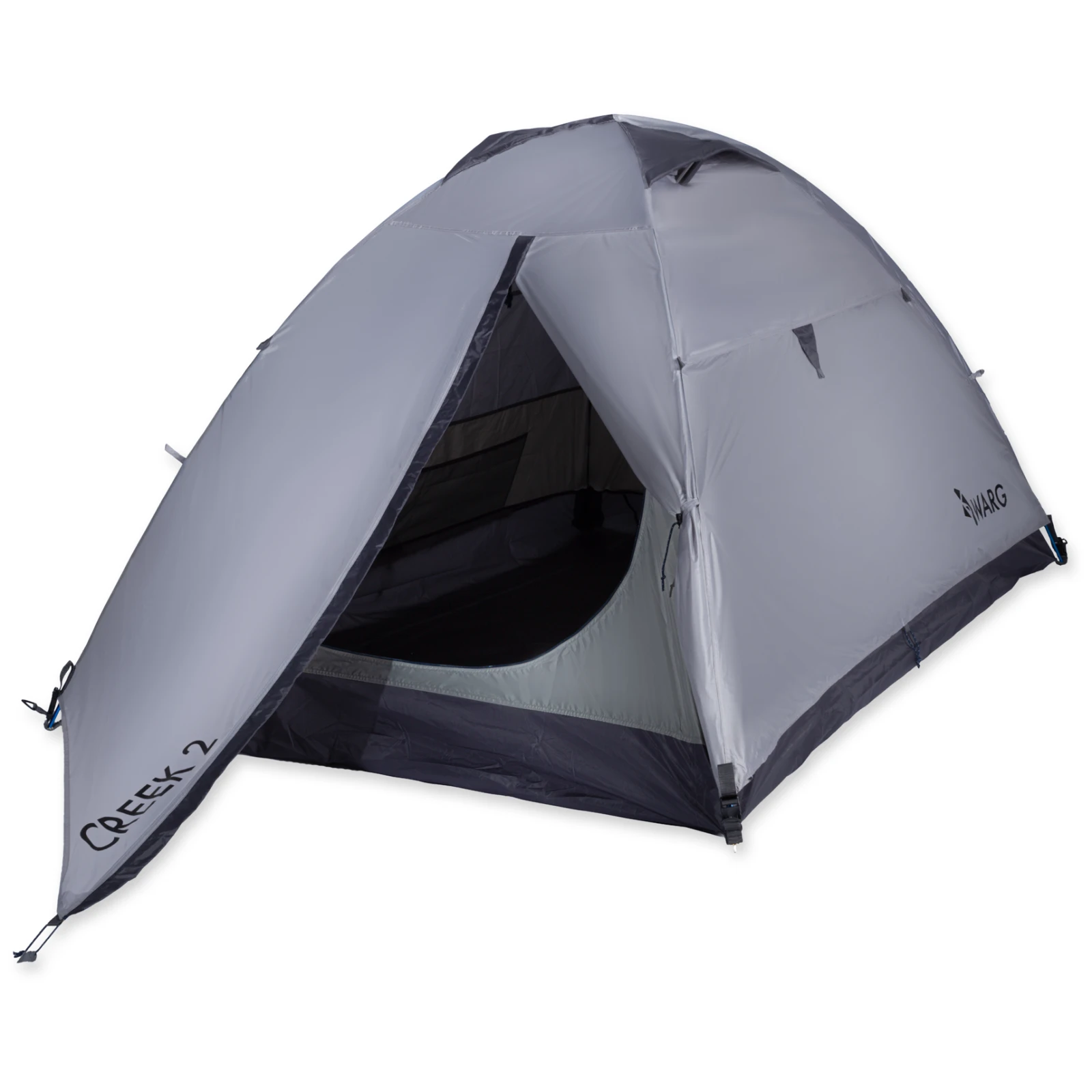 Warg Creek 2 ist ein leichtes, einfach aufzubauendes Touristenzelt in klassischer Duraluminium-Konstruktion mit zwei Eingängen und einem vergrößerten Hauptvorraum. Durch die graue Farbe werden die Sonnenstrahlen besser reflektiert und das Zelt überhitzt nicht, was neben einem höheren Wohnkomfort im Inneren auch die Lebensdauer des Planenmaterials verlängert. Belüftungsöffnungen im oberen Bereich der Baldachinkuppel und ein teilweise mit Netzen abgeschirmter Schlafraum sorgen für ausreichend Luftzirkulation während des Schlafs.