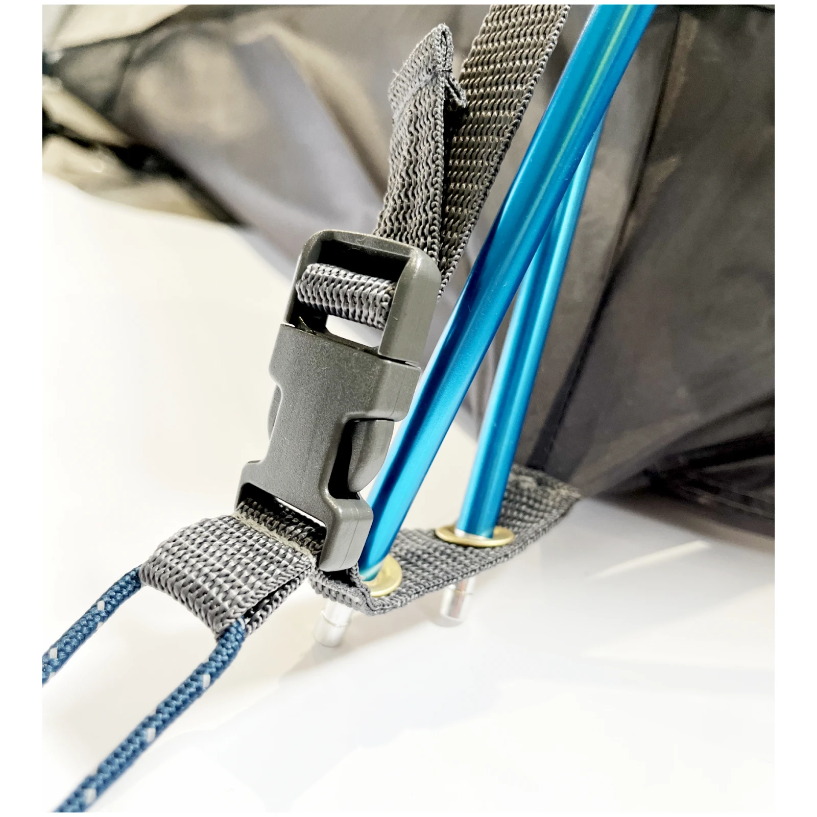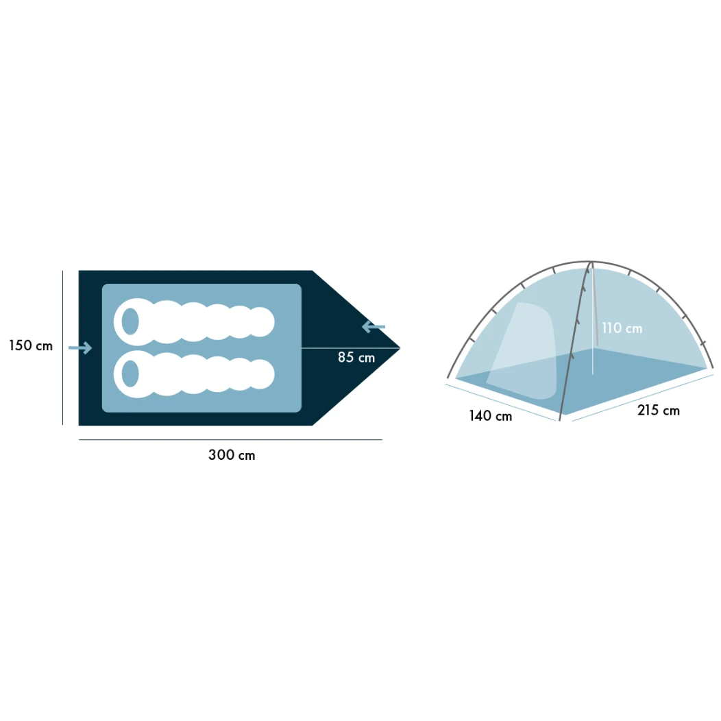 Zwei Eingänge sind praktisch für mehrere Personen und sorgen tagsüber für eine größtmögliche Luftzirkulation. Weitere Details, die das Campen noch angenehmer machen, wie Seitentaschen für Kleinteile oder ein Aufbewahrungsnetz im Schlafbereich, werden Sie sicher zu schätzen wissen. Nachleuchtende Ankerschnüre sorgen für gute Sichtbarkeit des Zeltes bei Nacht.