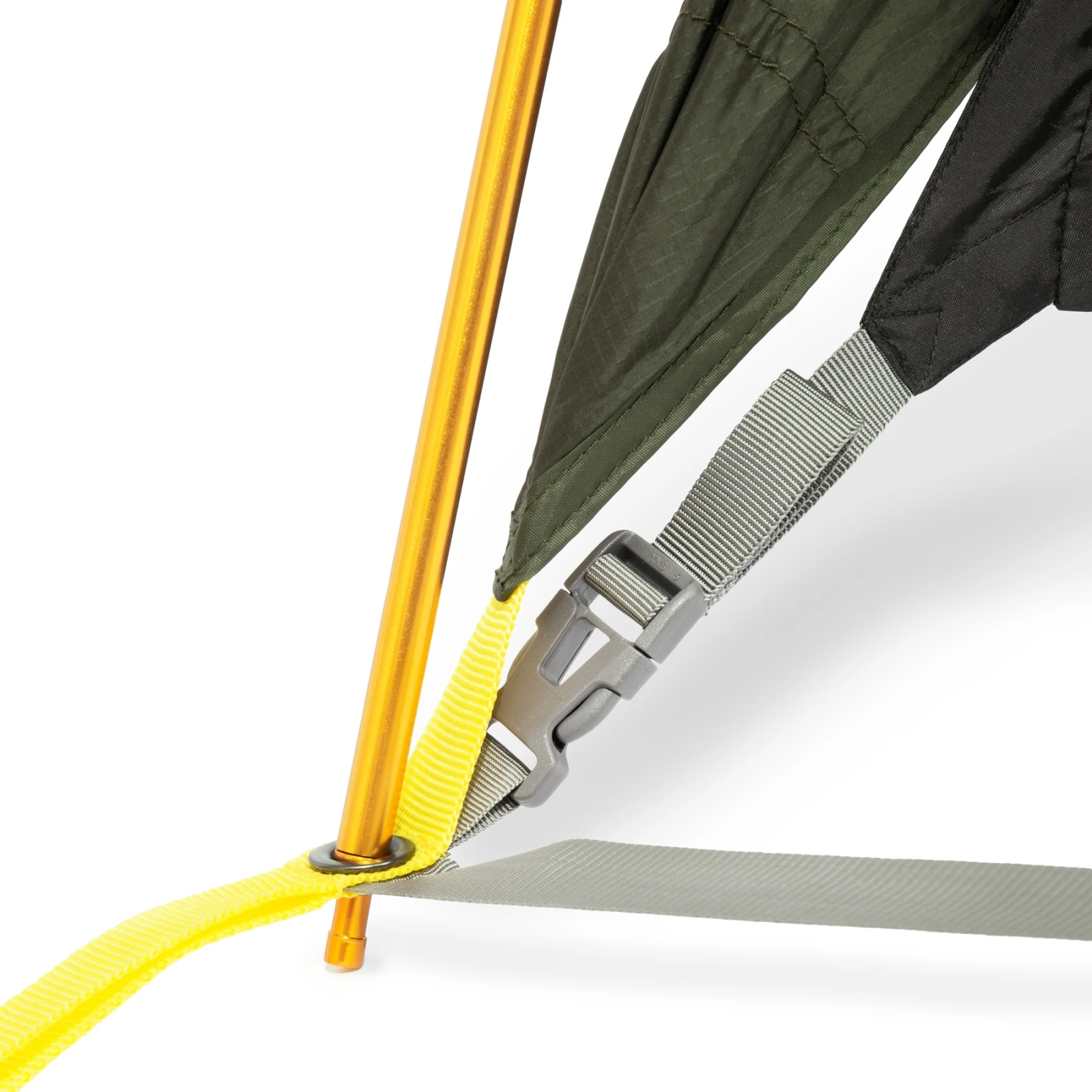 - Material Außenzelt: 20D Nylon Ripstop, beidseitige Silikonbeschichtung, 3.000 mm H2O