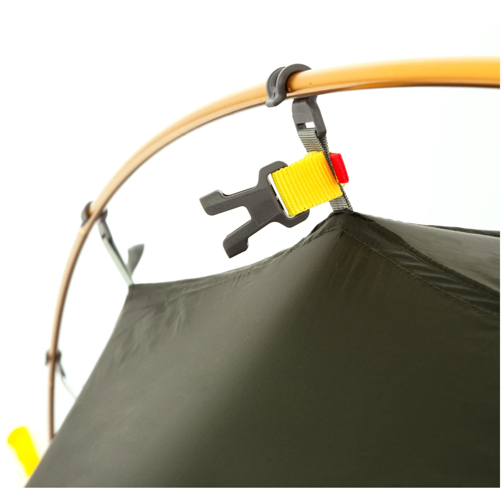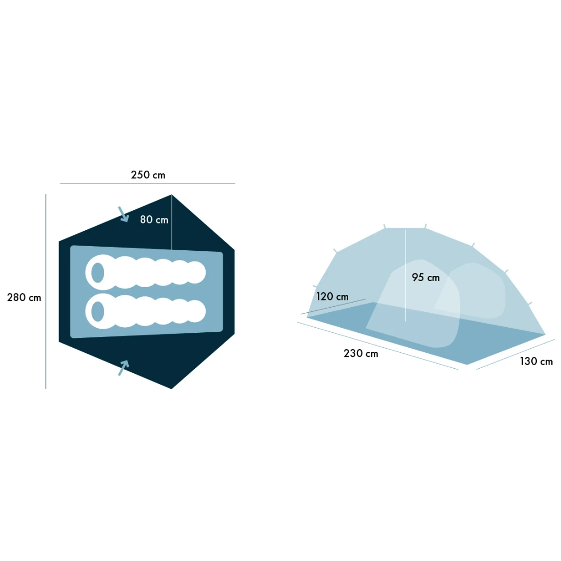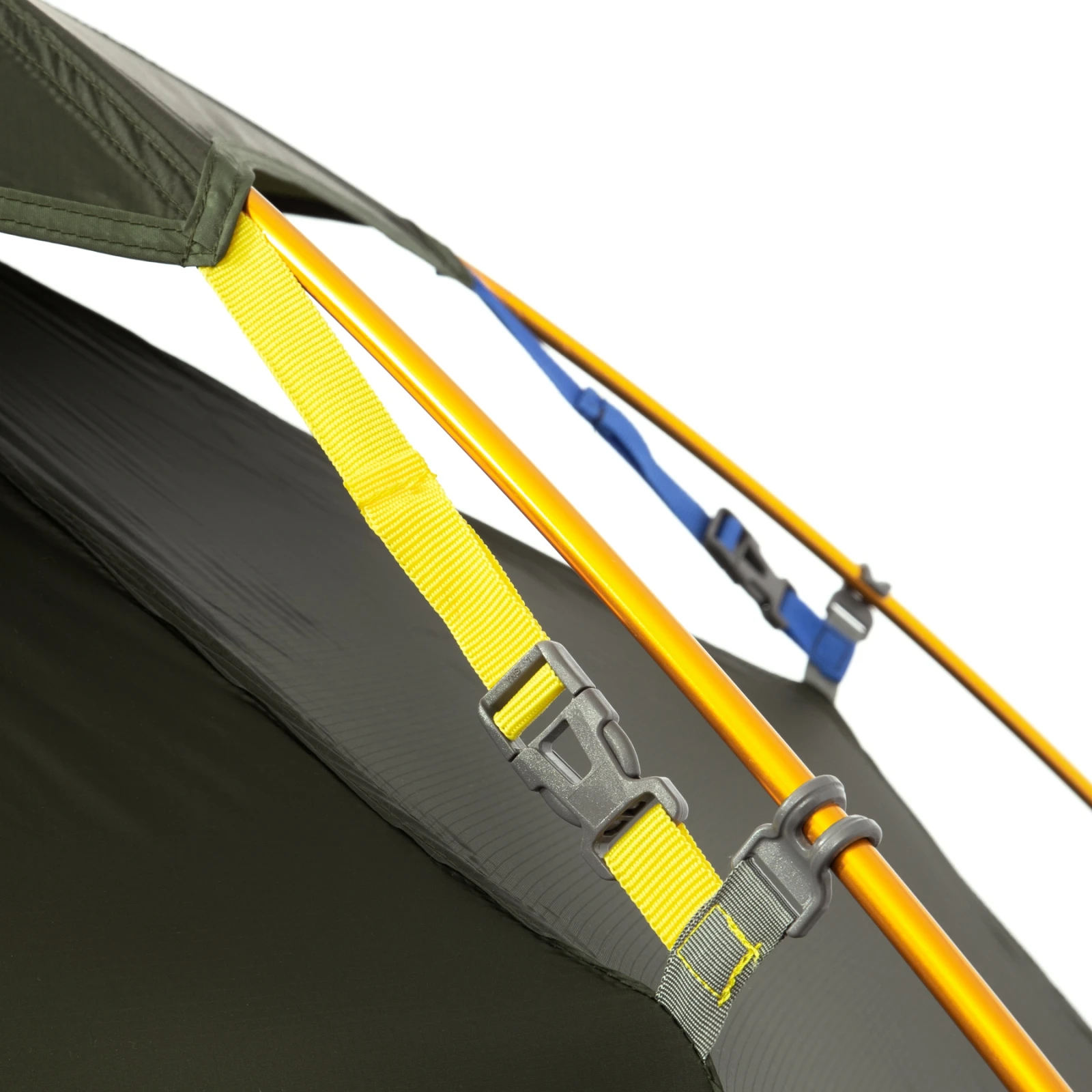 Zwei Eingänge werden besonders beim gemeinsamen Schlafen geschätzt und sorgen zudem für eine ausreichende Luftzirkulation. Praktisch sind auch die zwei großen Vorräume, in denen Sie Ihre Rucksäcke problemlos verstecken können. Für einen einfacheren und schnelleren Aufbau wurde auch an farbcodierte Riemen und Schnallen gedacht.