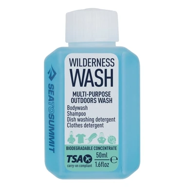 Dank seiner hohen Konzentration ist das Produkt Sea to Summit Wilderness Wash besonders für längere Reisen geeignet – wenige Tropfen reichen für eine Wäsche. Obwohl Wilderness Wash normalerweise biologisch abbaubar ist, wird empfohlen, Geschirr mindestens 100 m von einem Wasserlauf entfernt zu spülen. Es ist sanft zu Textilien und Haut und gleichzeitig wirksam bei fettigem Geschirr und Flecken auf der Wäsche.