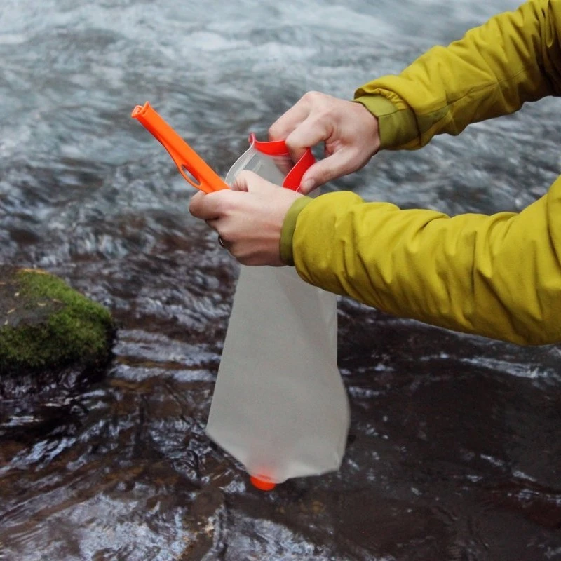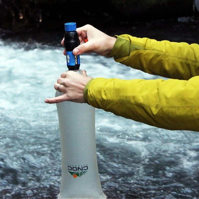 CNOC Vecto 3 l ist eine hochwertige und langlebige Wasser- und Filterflasche. Dank seiner Kompaktheit, Weichheit und minimalen Abmessungen können Sie es problemlos für die Reise einpacken. Es kann zum Trinken, zum Transportieren von Wasser oder als Teil eines Filtersystems Sawyerverwendet werden. Das patentierte duale Öffnungssystem ermöglicht ein leichtes Befüllen durch eine weite Öffnung auf der einen Seite und das Trinken durch ein schmales Mundstück (28 mm - kompatibel mit PET-Flaschen) auf der anderen Seite. Dank der engen Zusammenarbeit zwischen den Herstellern CNOC und Sawyer handelt es sich hierbei ohne Übertreibung um das bestmögliche Zubehör für Ihr Filtersystem der Marke Sawyer. Der Verschluss ist fest mit dem Flaschenhals verbunden, so dass kein Verlustrisiko besteht. Es ist außerdem mit einem Sicherheitsschlossausgestattet, das ein versehentliches Öffnen verhindert. Dank der großen Einfüllöffnung ist das Einfüllen von Wasser nie wieder ein Problem. Und nicht einmal in flachen Becken. Waschen und trocknen Sie die Flasche vor dem Gebrauch.