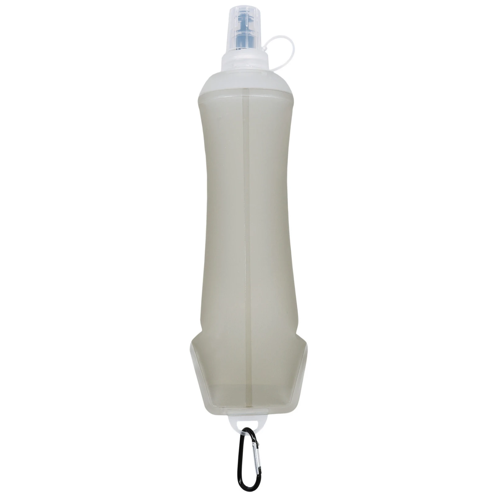Die Flasche besteht aus 100% TPU-Material, das flexibel, langlebig und BPA-frei ist und somit für den regelmäßigen Gebrauch geeignet ist. Nachdem der Inhalt geleert wurde, kann sie leicht zusammengefaltet werden und nimmt nur minimalen Platz ein, was Sie bei längerer Bewegung und auf engstem Raum zu schätzen wissen. Sie ist mit einem Beißventil (Bite Valve) mit einem verschließbaren Deckel ausgestattet, der ein versehentliches Auslaufen von Flüssigkeit verhindert. Dadurch ist das Trinken auch während der Bewegung schnell und bequem. Im Lieferumfang ist auch ein abnehmbarer Karabiner enthalten, der eine einfache Befestigung am Rucksack oder an der Ausrüstung ermöglicht. Die Flasche ist außerdem mit Laufwesten kompatibel, wo sie bequem in den Vordertaschen verstaut werden kann.
