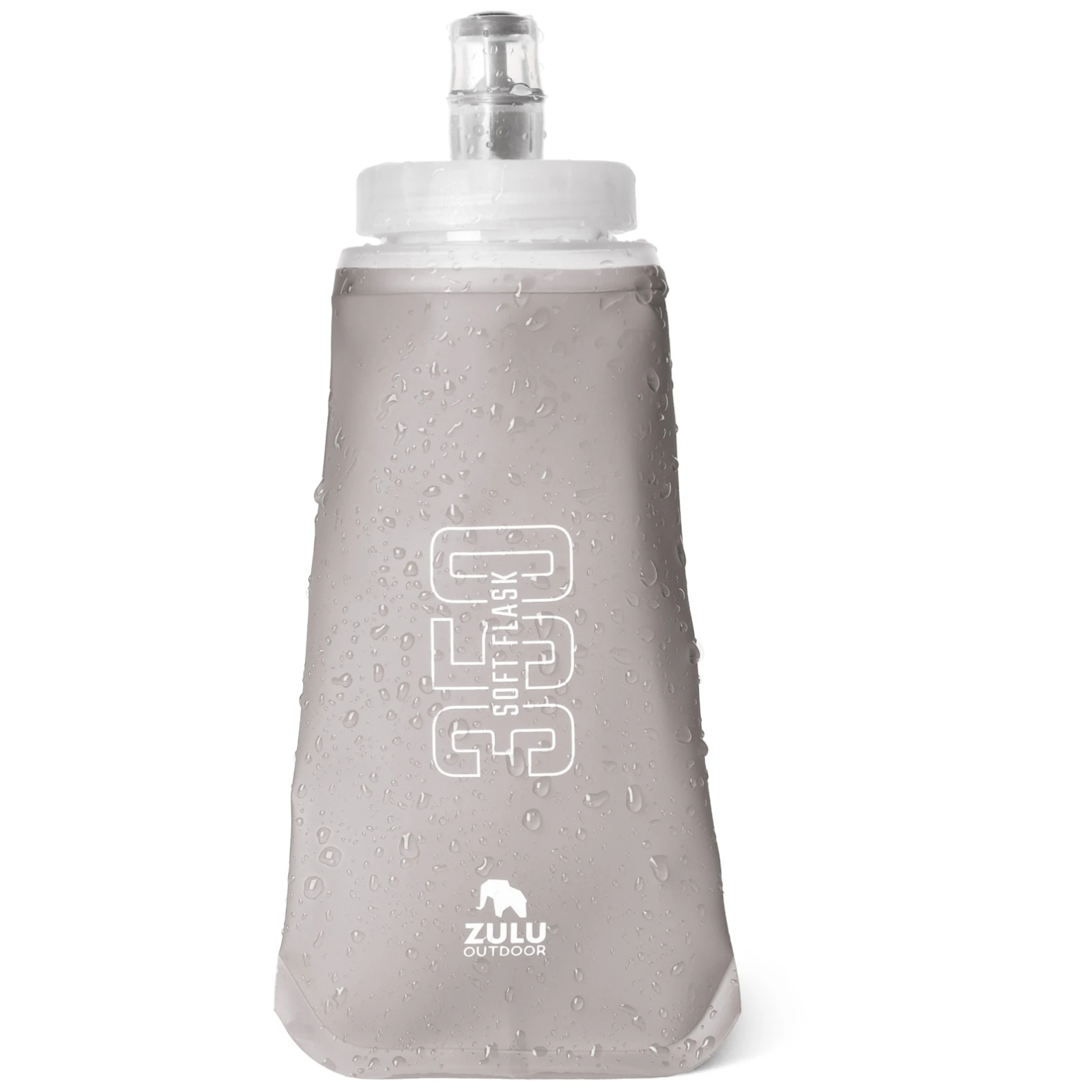 Leichte, faltbare Flasche Zulu Die Soft Flask 350 ist leichter, komfortabler und vor allem deutlich kompakter als herkömmliche Flaschen. Es ist mit den meisten Taschen von Laufwesten und -gürteln kompatibel. Der Schraubverschluss sorgt für einfaches Befüllen. Die Flasche lässt sich umstülpen und problemlos waschen. Eine großartige Wahl zum Laufen und Wandern.