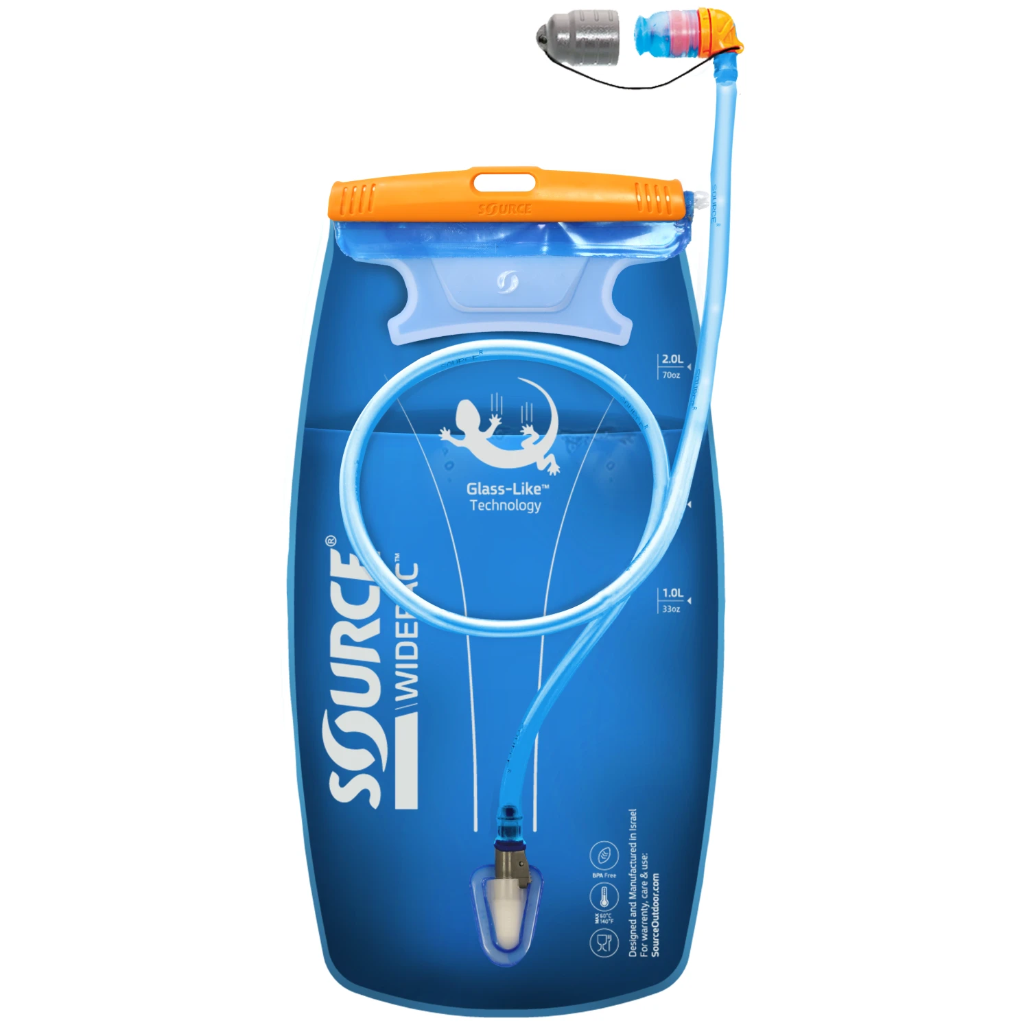Eine einfache Wartung und Reinigung wird auch durch das Material selbst gewährleistet, das aus einer mehrschichtigen Polyethylenfolie mit Glass-Like™ Technologie besteht. Die Oberfläche ist 2000 % glatter als Standard-TPU und unterscheidet sich praktisch nicht von Glas selbst. Das Material ist ohne Zusatzstoffe BPA und Phthalatehergestellt und nimmt weder Gerüche noch Geschmack an. Die Trinkblase und der Schlauch sind außerdem mit der Grunge-Guard™-Technologie ausgestattet, die das Wachstum von Bakterien verhindert und so mehrere Tage lang sauberes Trinkwasser gewährleistet.