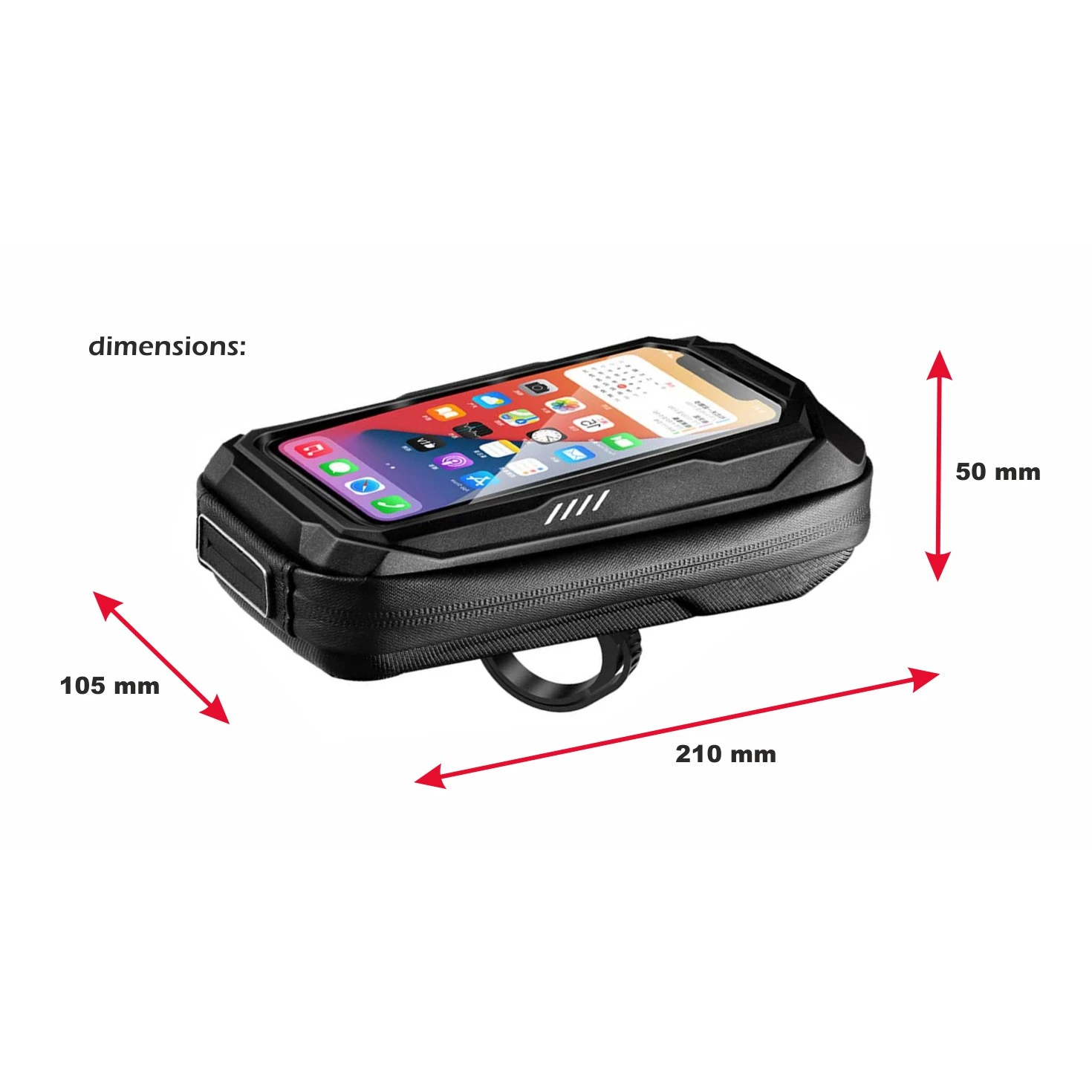 Die wasserdichte Fahrradtasche WATERPROOF BIKE HOLDER der Marke Swissten verfügt über ein Befestigungssystem, das eine feste und sichere Befestigung der Tasche am Lenker oder Vorbau garantiert. Bei der Brotzeitpause lässt sich der Koffer ganz einfach über einen Hebel lösen und mitnehmen. Ausgestattet ist das Case mit einem Kopfhöreranschluss und einem praktischen transparenten Glimmer. Die Fertigung aus stabilem Material stellt sicher, dass Ihr Smartphone und andere Gegenstände im Inneren der Hülle maximal vor Beschädigungen und dank Wasserbeständigkeit nach IP66 auch vor widrigen Witterungsbedingungen geschützt sind.