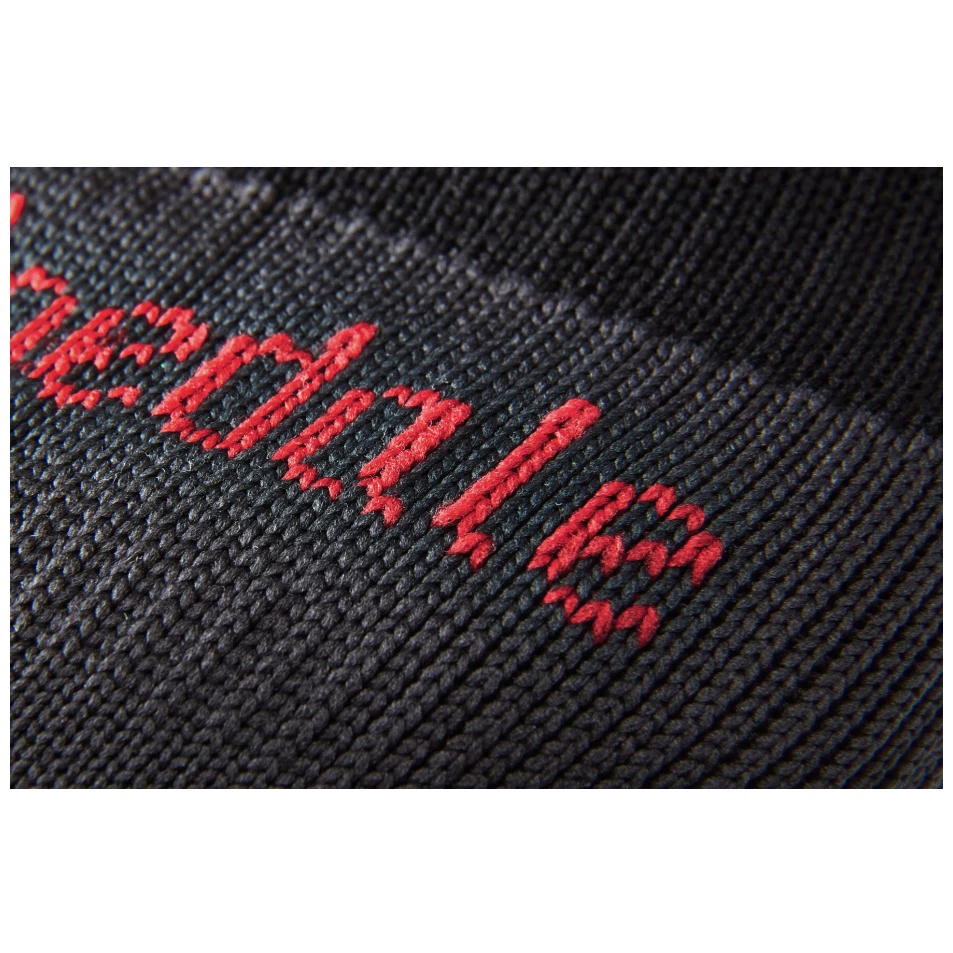 Unter der Membran wird der thermische Komfort Ihrer Füße überwacht feine Merinowolle. Dadurch riechen die Socken nicht und bleiben warm, auch wenn sie schweißnass sind. Auf der Außenseite der Socken wachen sie dann strapazierfähigesNylon-Strickgewebe.