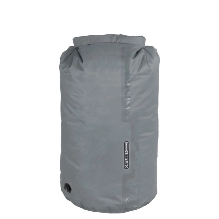 Kompressionsbeutel Dry-Bag PS10 Valve 22L der Marke Ortlieb ist die perfekte Wahl für Reisen, bei denen Sie sicherlich die Wasserdichtigkeit und die Kompressionseigenschaften zu schätzen wissen, dank denen Sie kompaktere Abmessungen erhalten. Das Gehäuse besteht aus wasserdichtem Nylonmaterial mit IP64-Zertifizierung. Der Boden wird anschließend mit einem robusten, abrieb- und reißfesten Material überzogen. An der Unterseite des Standfußes befindet sich ein stabiler Gurt, der zur Fixierung dient und das Auspacken beschleunigt.