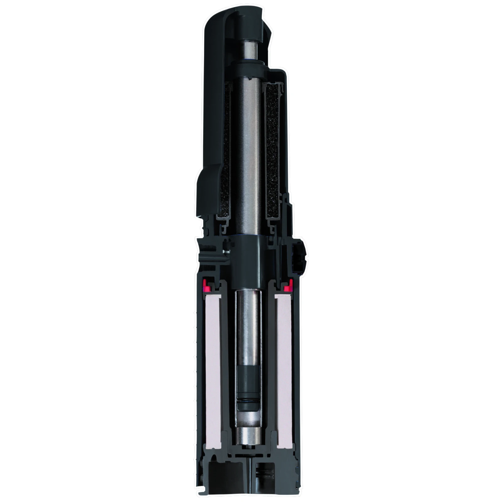 - Standzeit: bis zu 50.000 l je nach Trübung des Quellwassers (400 l auswechselbarer Kohlefilter)