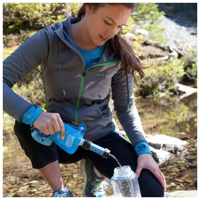 Die Anwendung ist einfach: Füllen Sie Wasser aus einem See, Bach oder Fluss in die Flasche/den Beutel, schrauben Sie den Filter Sawyer darauf und schon haben Sie vier Möglichkeiten: