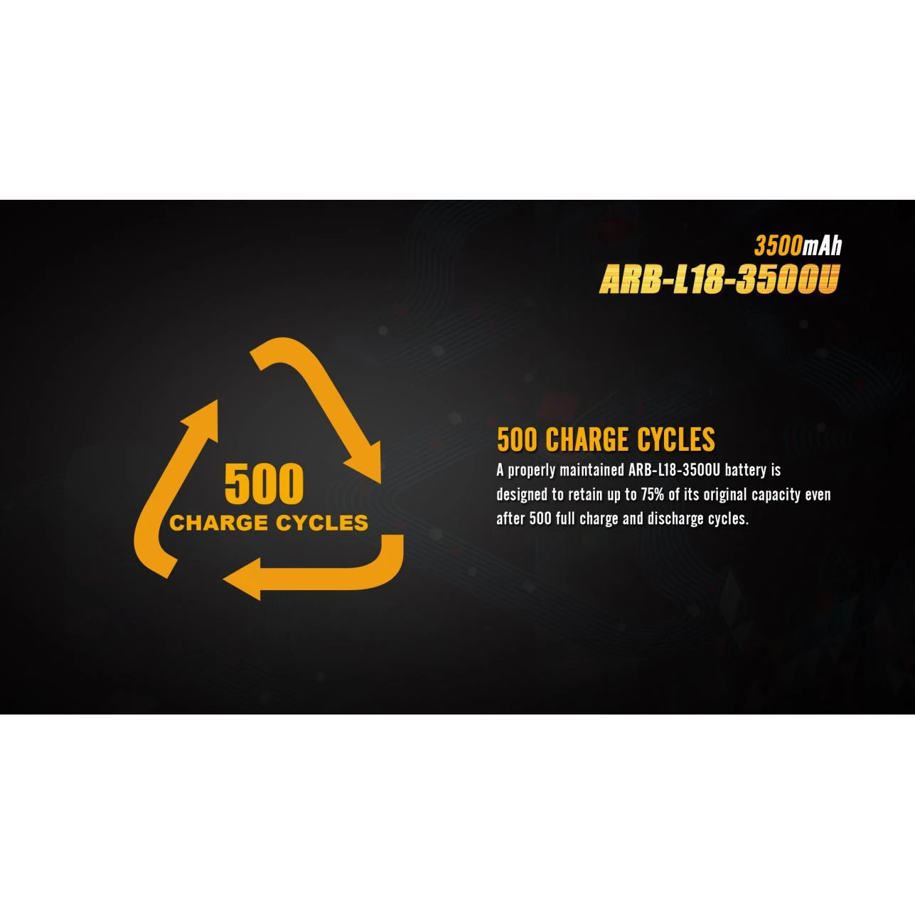 - Lieferumfang: ein Stück Akku Fenix 18650 3500mAh USB (ARB-L18-3500U)