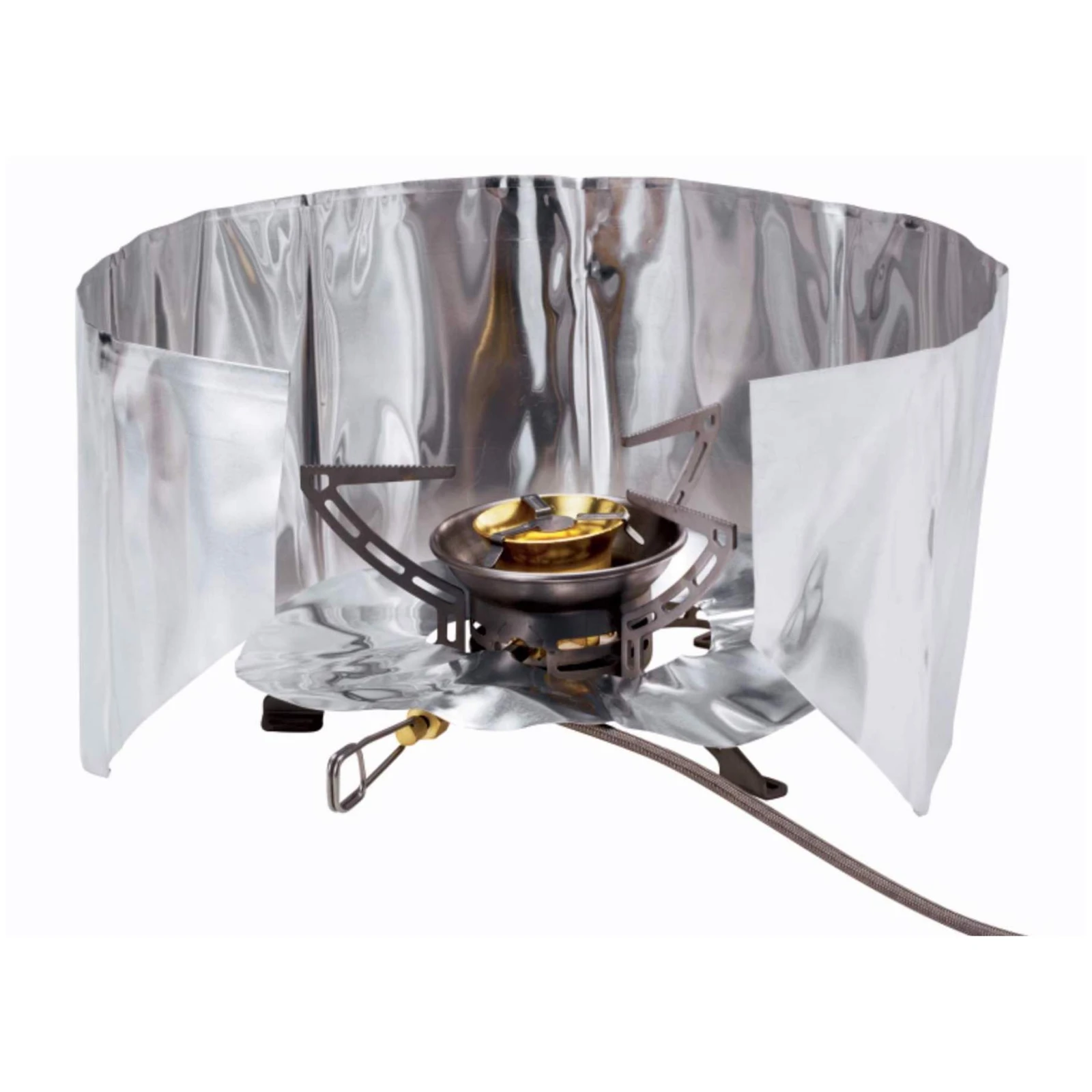 Der Windschutz und Wärmereflektor Leeward Primus erhöht die Stabilität des Ofens, verkürzt die zum Erhitzen von Speisen oder Wasser benötigte Zeit und schützt vor windigem Wetter.