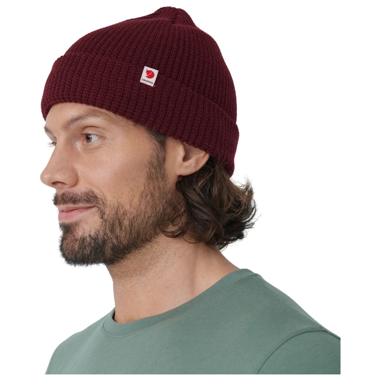 Fjällräven Tab Hat ist eine kuschelige Strick-Wintermütze, die durch ihr recyceltes Material und ihr stylisches Design überzeugt.