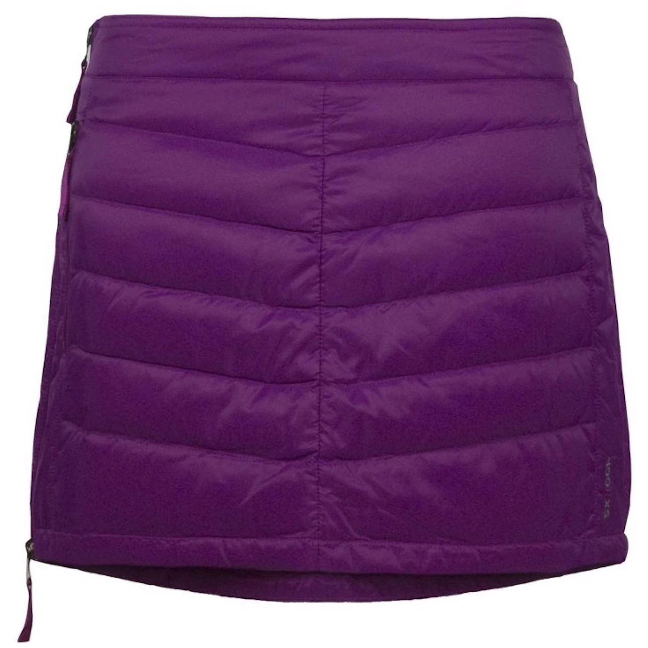 Der kurze Winterrock Down Mini der Firma Skhoop besticht vor allem durch seine hervorragende Wärme und Kompaktheit. Es ist mit Daunen höchster Qualität isoliert und lässt sich bequem in einer Tasche verstauen, die mit einem doppelseitigen Reißverschluss ausgestattet ist. Der Rock ist natürlich vollständig offen und lässt sich von unten nach oben mit dem Reißverschluss öffnen. Der Reißverschluss befindet sich seitlich und dient zugleich als praktischer Schlitz, falls Du mehr Bewegungsfreiheit benötigst. Und damit der Rock optimal sitzt, ist er hinten mit elastischem Gummi versehen, der ein Hochrutschen des Rocks beim Sitzen verhindert und zusätzlich an den Seiten mit Silikonstreifen versehen, die den Rock auch bei einer anstrengenden Wanderung an Ort und Stelle halten.