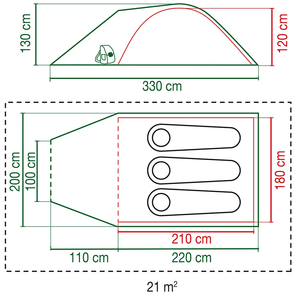 Es wird vor allem bei Familienzelten verwendet, bei denen der Schwerpunkt auf nutzbarem Raum und Komfort liegt. Mehr Schlafzimmer bedeuten mehr Privatsphäre und mehr Vielfalt im Innenraum.