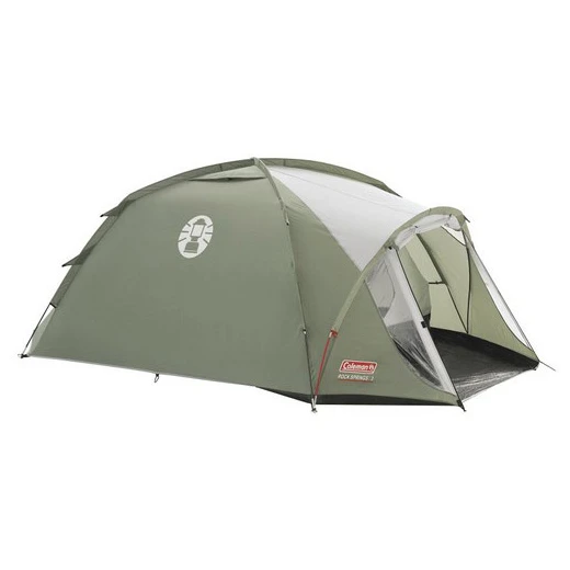 Das Rock Springs 4 der Marke Coleman ist ein praktisches 4-Personen-Zelt, das eine ideale Wahl für den Einsatz am Wasser, kürzere Campingausflüge, leichte Wanderungen oder Festivals ist. Bei diesen Aktivitäten werden Sie sicherlich das geräumige Schlafzimmer zu schätzen wissen,das mit einem Moskitonetzausgestattet ist. Der Zugang zum Zelt erfolgt über zwei Eingänge, hinter denen sich zwei Vorräumebefinden. Hinter dem Haupteingang befindet sich eine größere Halle, die ebenfalls mit PVC-Fenstern für mehr Tageslicht ausgestattet ist. Dieser Eingang lässt sich mittels Stahlstangen (nicht im Lieferumfang enthalten) auch in einen geräumigen Unterstand verwandeln.
