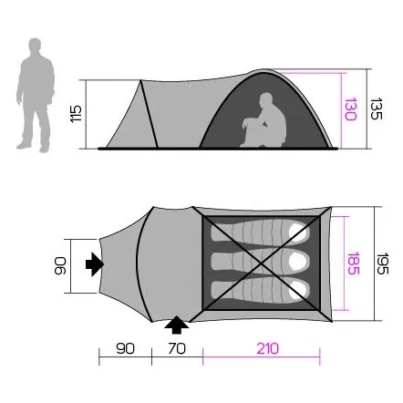 Es wird vor allem bei Familienzelten verwendet, bei denen der Schwerpunkt auf nutzbarem Raum und Komfort liegt. Mehr Schlafzimmer bedeuten mehr Privatsphäre und mehr Vielfalt im Innenraum.