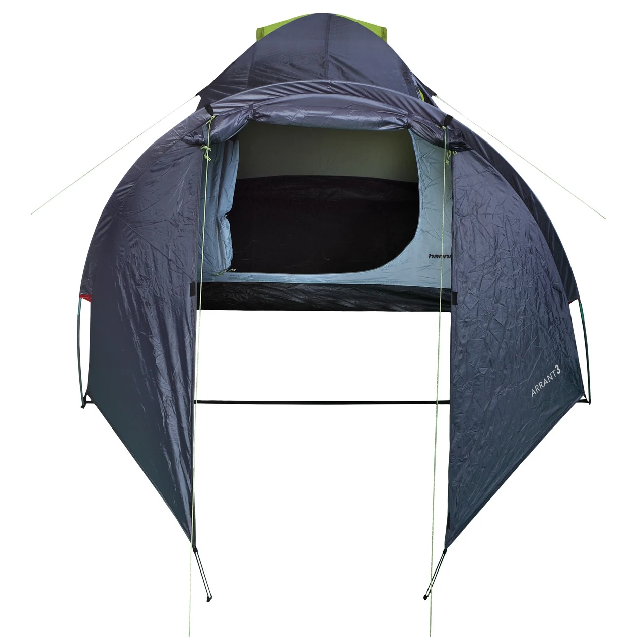 Das Arrant 3 ist ein Touristenzelt der Marke Hannah für 2 Personen mit Gepäck oder für 3 Personen, in dem Sie bequem Ihr gesamtes Gepäck und Wasserfässer verstauen können. Das Zelt verfügt über eine Innenstruktur, die die Möglichkeit bietet, selbst ein Schlafzimmer einzurichten. Dank 2 Eingängen und 2 Lüftungsräumen sowie Türen mit Teilbelüftung können Sie ganz einfach für angenehme Frischluft sorgen. Das Schlafzimmer bietet ausreichend Platz für einen angenehmen Schlaf und sorgt dafür, dass Sie jederzeit für Ihre nächste Wanderung bereit sind.