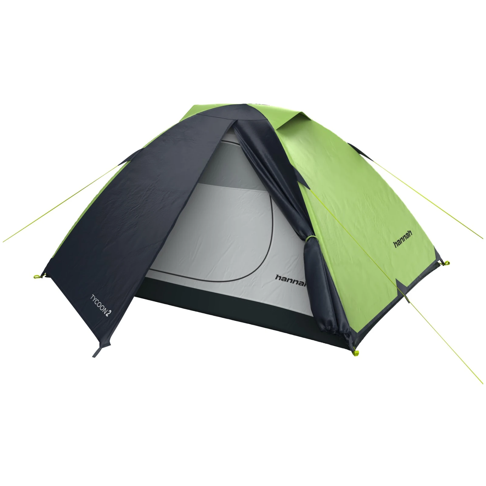 Das leicht verpackbare Touristenzelt für 2 Personen Hannah Tycoon 2 ist für anspruchslose Benutzer zum Wandern, Camping oder Bootfahren konzipiert. Dank der Apsis kann auch bei widrigen Bedingungen darin gekocht werden. Das Zelt verfügt außerdem über Funktionen wie ein Deckenablagefach und Türen mit teilweiser Belüftung.