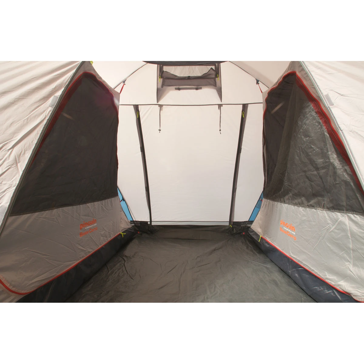 Das Familienzelt Base Camp der Firma Pinguin verfügt über zwei Schlafkabinen und die Möglichkeit durch die Abstützung der Eingangsteile Vordächer zu bilden . Die Zeltkonstruktion besteht aus vier Laminatstäben, die sich an fünf Punkten kreuzen und so starkem Wind und anderen widrigen Witterungsbedingungen problemlos standhalten. Die Innenzelte können vom Außenzelt getrennt werden und das Außenzelt kann separat aufgestellt werden, wodurch ein leichter und luftiger einwandiger Unterschlupf entsteht.