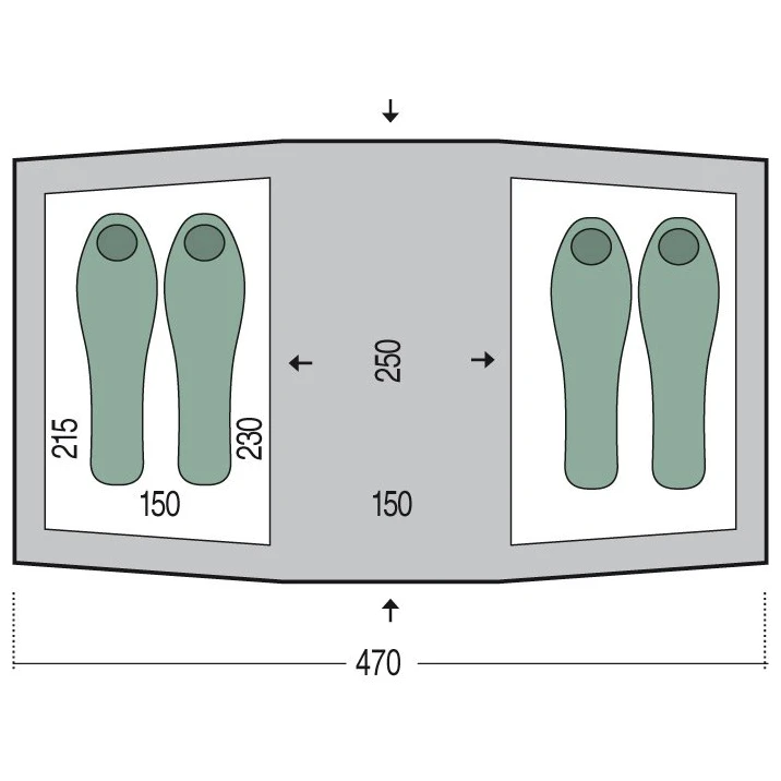 Es wird vor allem bei Familienzelten verwendet, bei denen der Schwerpunkt auf nutzbarem Raum und Komfort liegt. Mehr Schlafzimmer bedeuten mehr Privatsphäre und mehr Vielfalt im Innenraum.