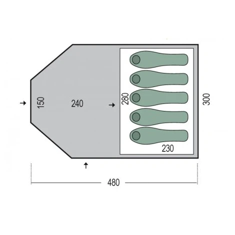 - Das Zelt ist für 5 Personen ausgelegt.