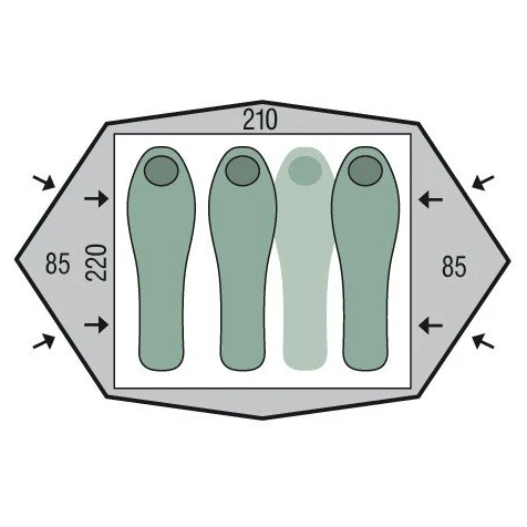 Es wird vor allem bei Familienzelten verwendet, bei denen der Schwerpunkt auf nutzbarem Raum und Komfort liegt. Mehr Schlafzimmer bedeuten mehr Privatsphäre und mehr Vielfalt im Innenraum.