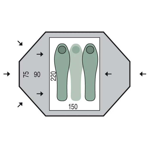 Das Zelt ist doppelwandig und besteht aus einem Innenzelt und einer Außenhülle – einem Überzelt. Das Innenzelt hat einen rechteckigen Grundriss mit zwei Eingängen an den längeren Seiten. Das Außenzelt ist achteckig und verfügt ebenfalls über zwei Eingänge, in denen sich zwei Apsiden befinden, die sich zum Beispiel zur Aufbewahrung von Gepäck eignen.