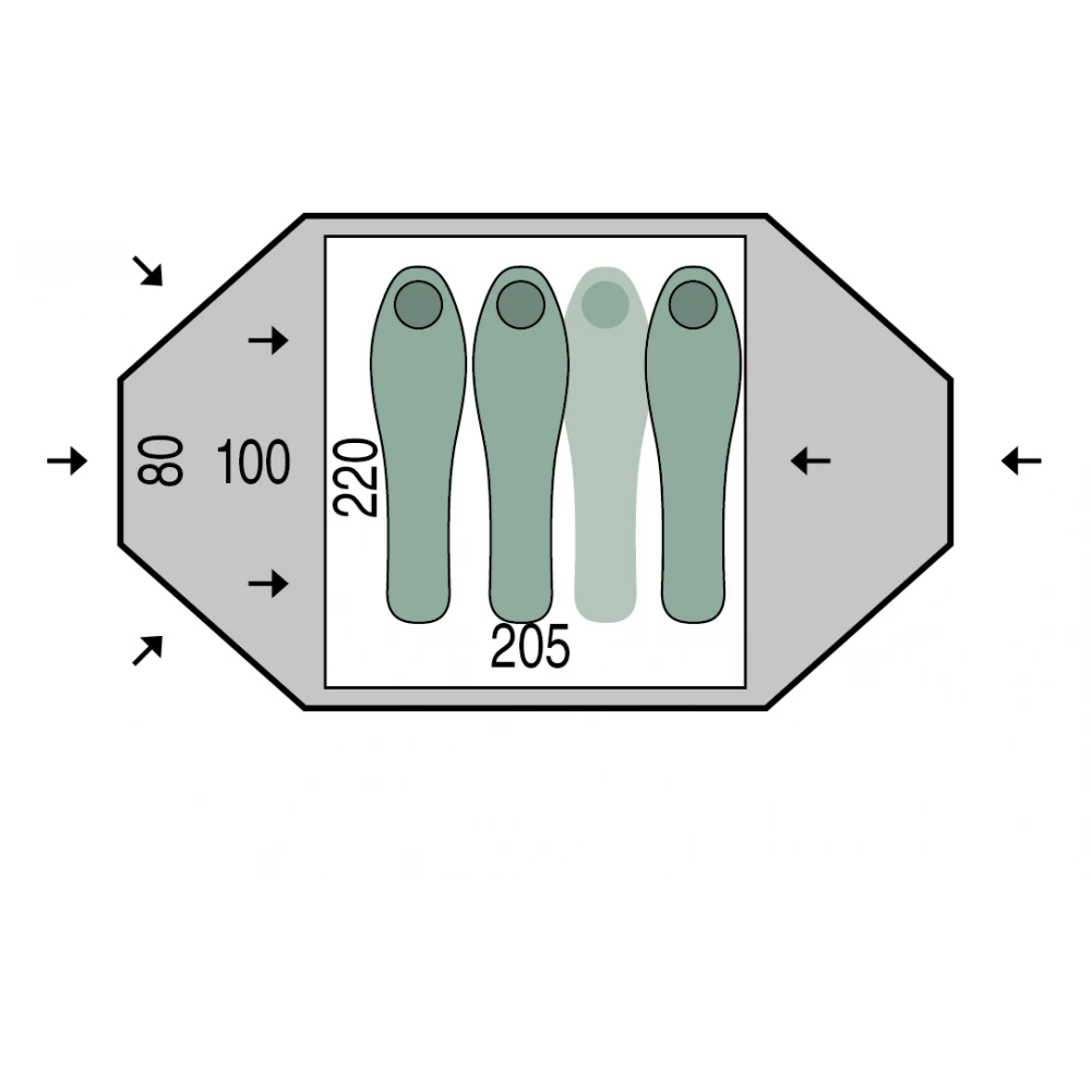 Das Zelt ist doppelwandig und besteht aus einem Innenzelt und einer Außenhülle – einem Überzelt. Das Innenzelt hat einen rechteckigen Grundriss mit zwei Eingängen an den längeren Seiten. Das Außenzelt ist achteckig und verfügt ebenfalls über zwei Eingänge, in denen sich zwei Apsiden befinden, die sich zum Beispiel zur Aufbewahrung von Gepäck eignen.