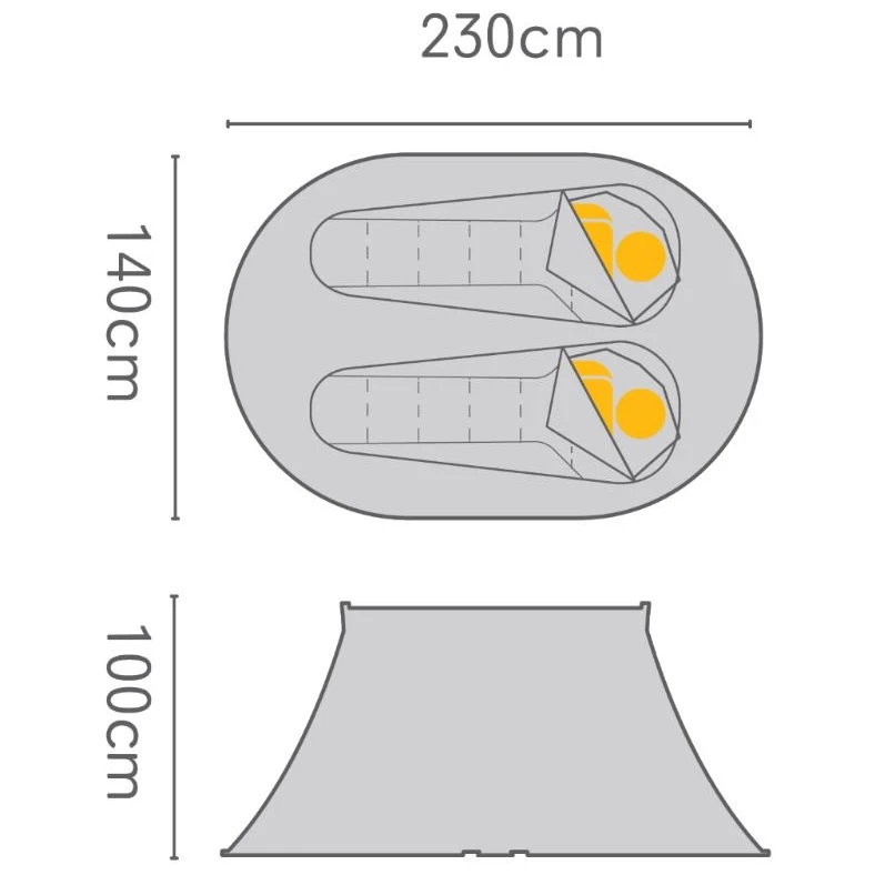 Es wird vor allem bei Familienzelten verwendet, bei denen der Schwerpunkt auf nutzbarem Raum und Komfort liegt. Mehr Schlafzimmer bedeuten mehr Privatsphäre und mehr Vielfalt im Innenraum.