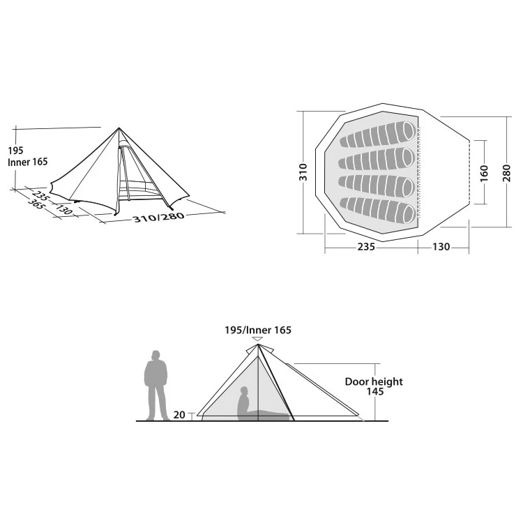 Die Struktur selbst besteht aus leichten und langlebigen Aluminiumstangen. Die Mittelstange ist teleskopisch ausziehbar und leicht versetzt, sodass sie beim Schlafen in der Zeltmitte nicht stört. Mithilfe dieser Stange können Sie die Höhe des Zeltes und den Belüftungsspalt regulieren. Im Innenraum sind Kleine Eckstäbe eingenäht, die die Wand anheben und so den Raum vergrößern. Das Zelt ist allerdings so konstruiert, dass es auch als Einhäuter Zelt, also ohne Innenzelt, verwendet werden kann, so dass man auf ein Gewicht von lediglich 3,2 kg kommt.