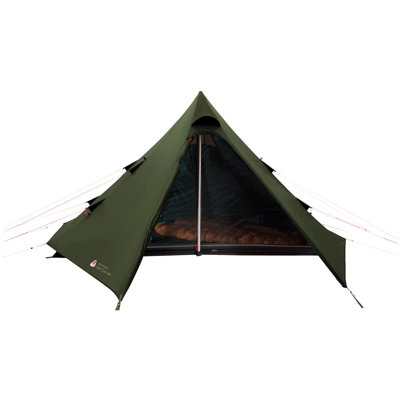 Das Green Cone PRS Tipi-Zelt der Marke Robens ist eine perfekte Wahl für kleinere Familien oder Gruppen von Freunden. Es dient als Kulisse für jedes Spiel oder jede Party und bietet bequem Platz für bis zu vier Personen in einem Schlafzimmer .