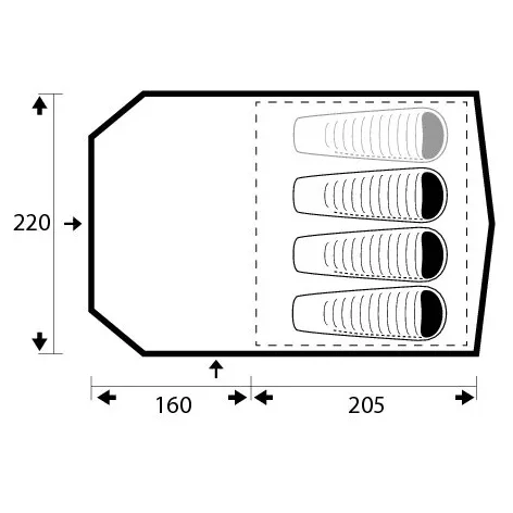 Es wird vor allem bei Familienzelten verwendet, bei denen der Schwerpunkt auf nutzbarem Raum und Komfort liegt. Mehr Schlafzimmer bedeuten mehr Privatsphäre und mehr Vielfalt im Innenraum.