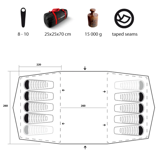 Es wird vor allem bei Familienzelten verwendet, bei denen der Schwerpunkt auf nutzbarem Raum und Komfort liegt. Mehr Schlafzimmer bedeuten mehr Privatsphäre und mehr Vielfalt im Innenraum.