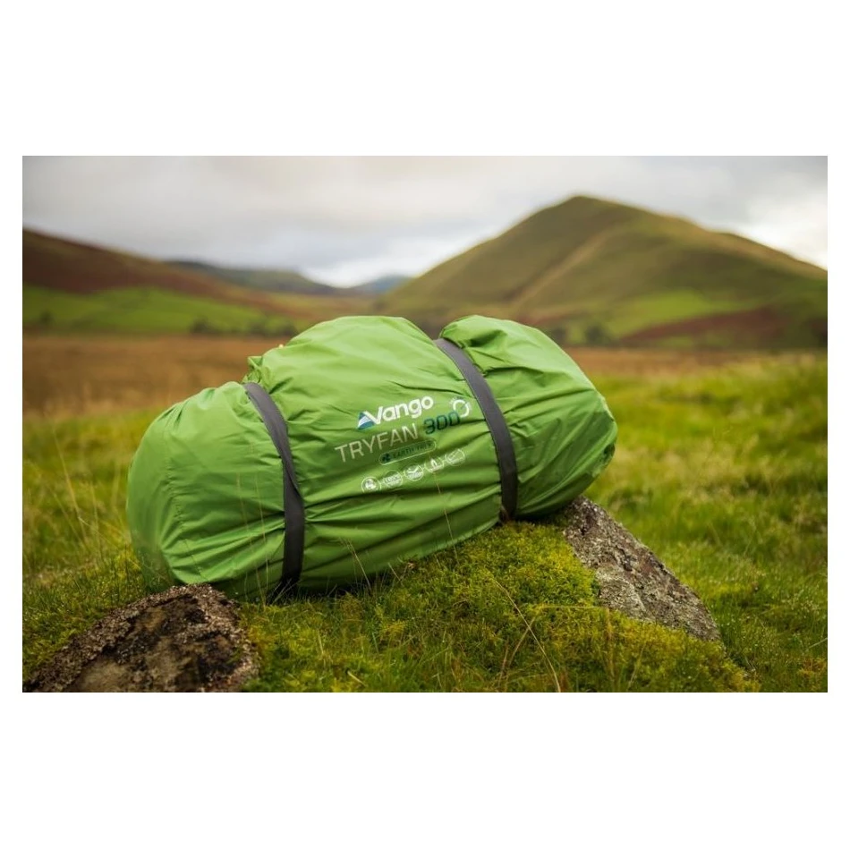 Das Tryfan 300 Drei-Personen-Campingzelt der Marke Vango verfügt über einen geräumigen Innenraum und eine sehr gute Belüftung. Dafür sorgen zwei extra große Seitenlüftungen und eine Netztür. Der Innenteil wird zuerst aufgebaut, sodass er bei heißem Wetter separat verwendet werden kann. Der Zugang zum Zelt erfolgt über 2 große Eingänge, die gleichzeitig als Ablagefläche für Gepäck dienen können. Die großen Seitenöffnungen können vollständig geöffnet oder geschlossen werden, wodurch das Zelt sowohl für wärmere Regionen als auch für Reisen in Großbritannien geeignet ist.