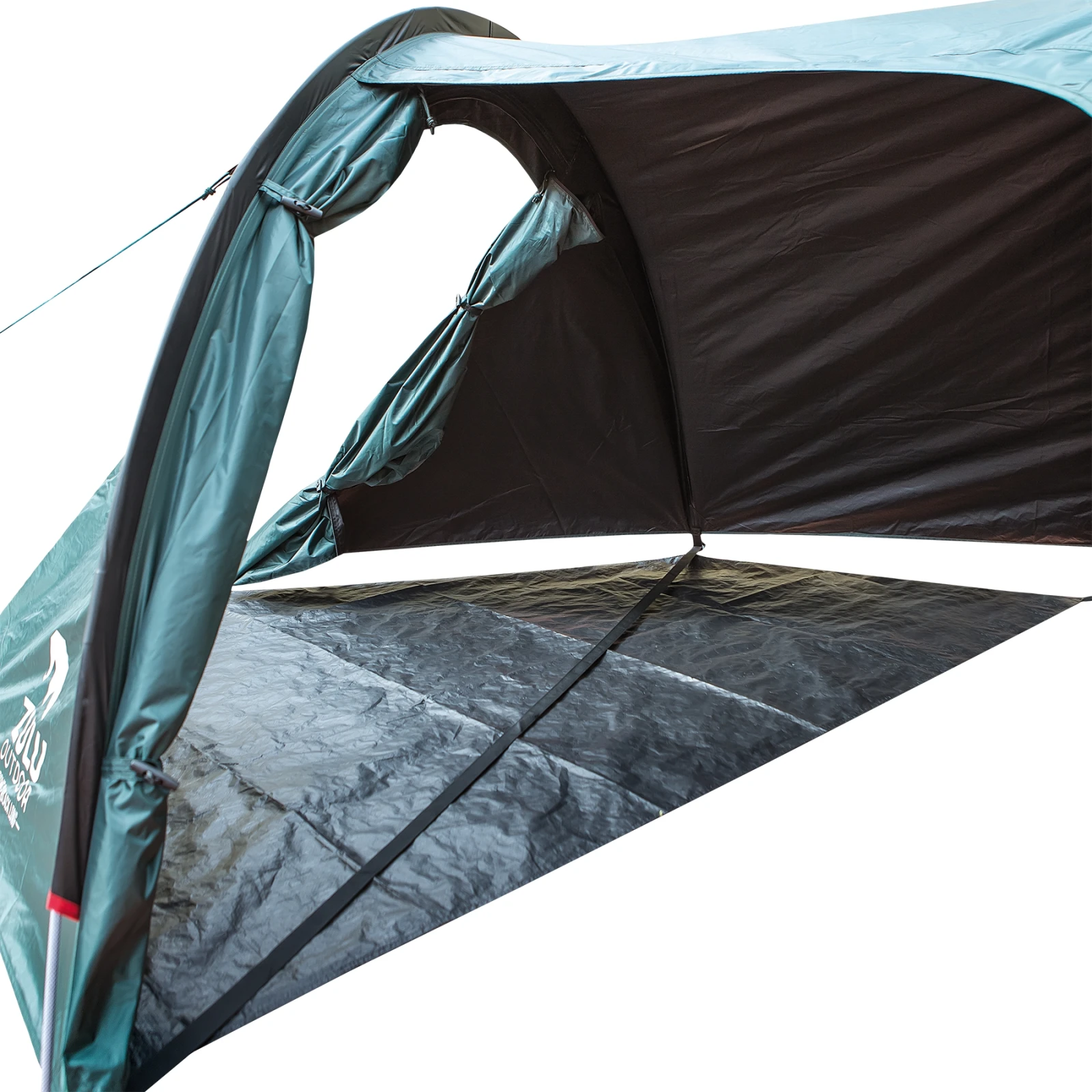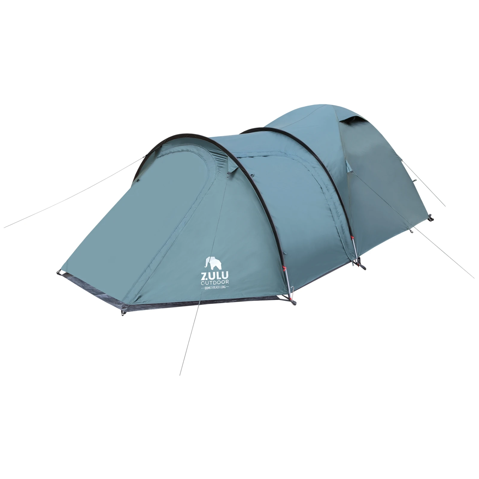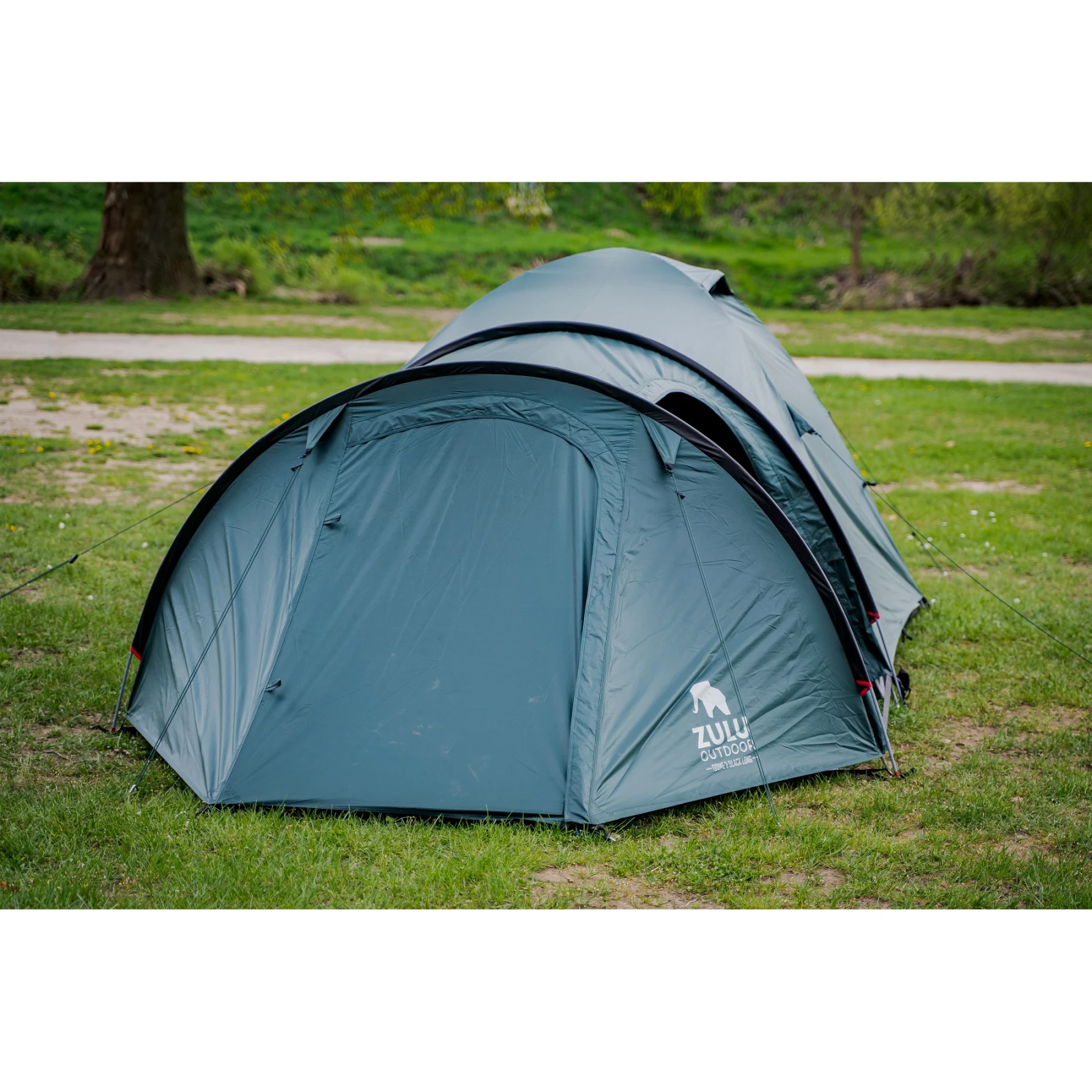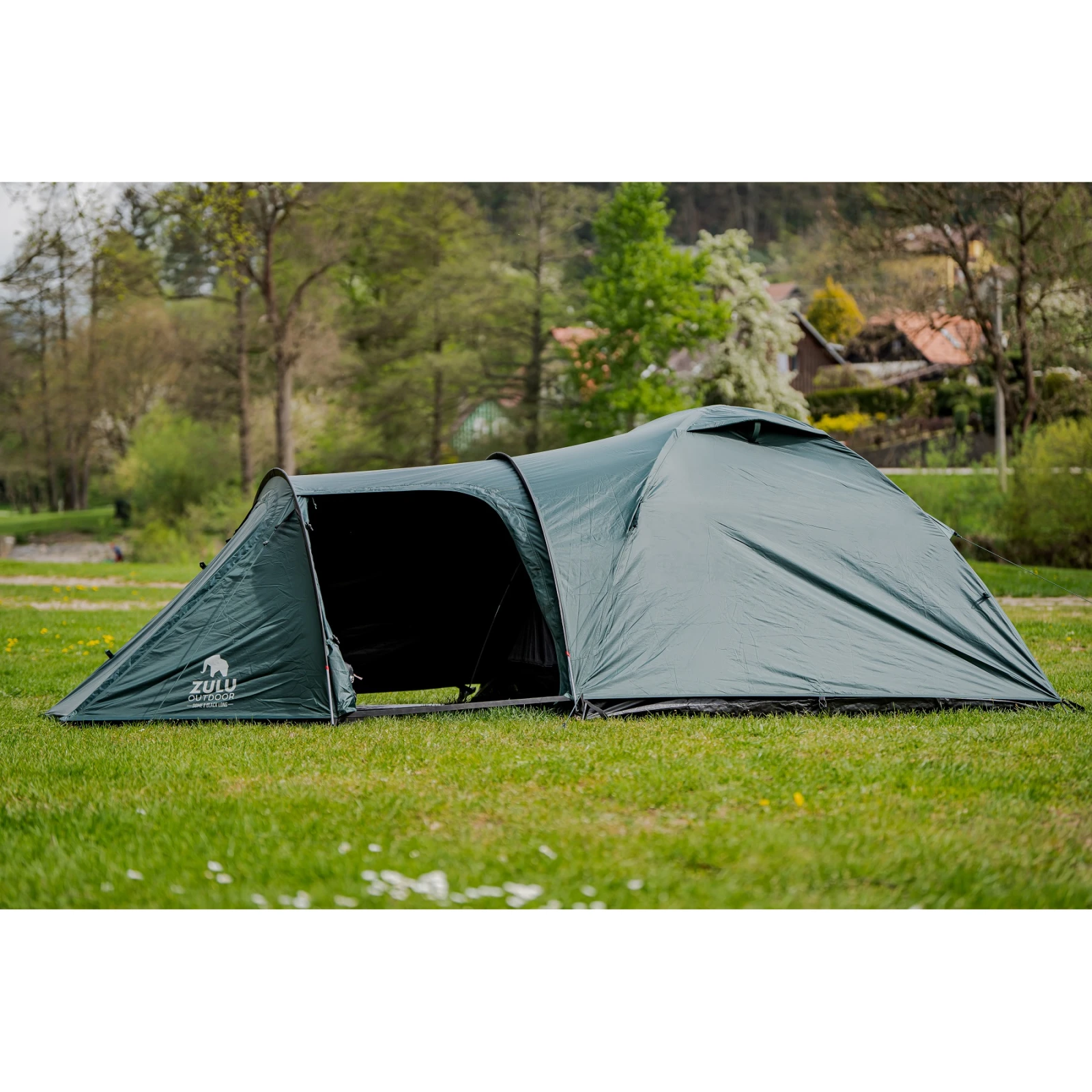 Das Zelt mit zwei Eingängen lässt sich leicht aufbauen. Es eignet sich besonders für das Camping von Frühjahr bis Herbst. Um den Außensitzbereich außerhalb des Schlafzimmers zu erweitern, kann das Zelt mit der Zulu Dome Tarp verbunden werden.
