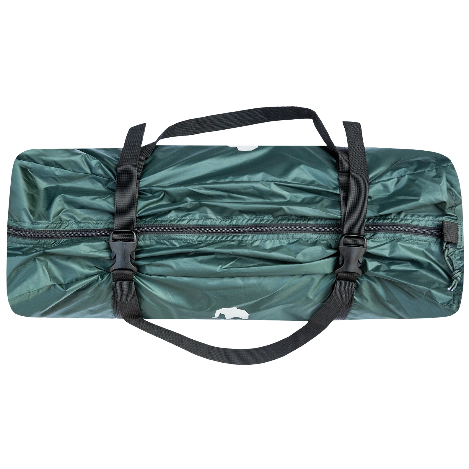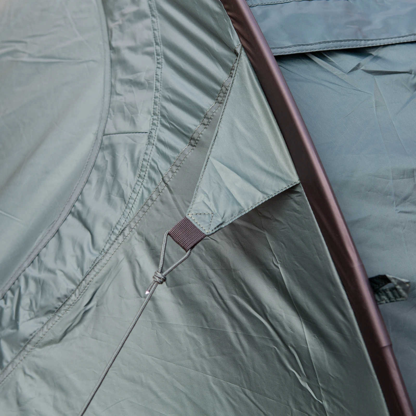 Der Schlafbereich des Zelts ist mit einer speziellen Black AM -Behandlung versehen, die dazu beiträgt, die Sonnenenergie auf der Oberfläche des Baldachins zu speichern und so eine angenehme Temperatur und Dunkelheit im Zelt aufrechtzuerhalten. Die ersten Sonnenstrahlen am Morgen machen Ihnen nichts aus und Sie können einen längeren Schlaf genießen.