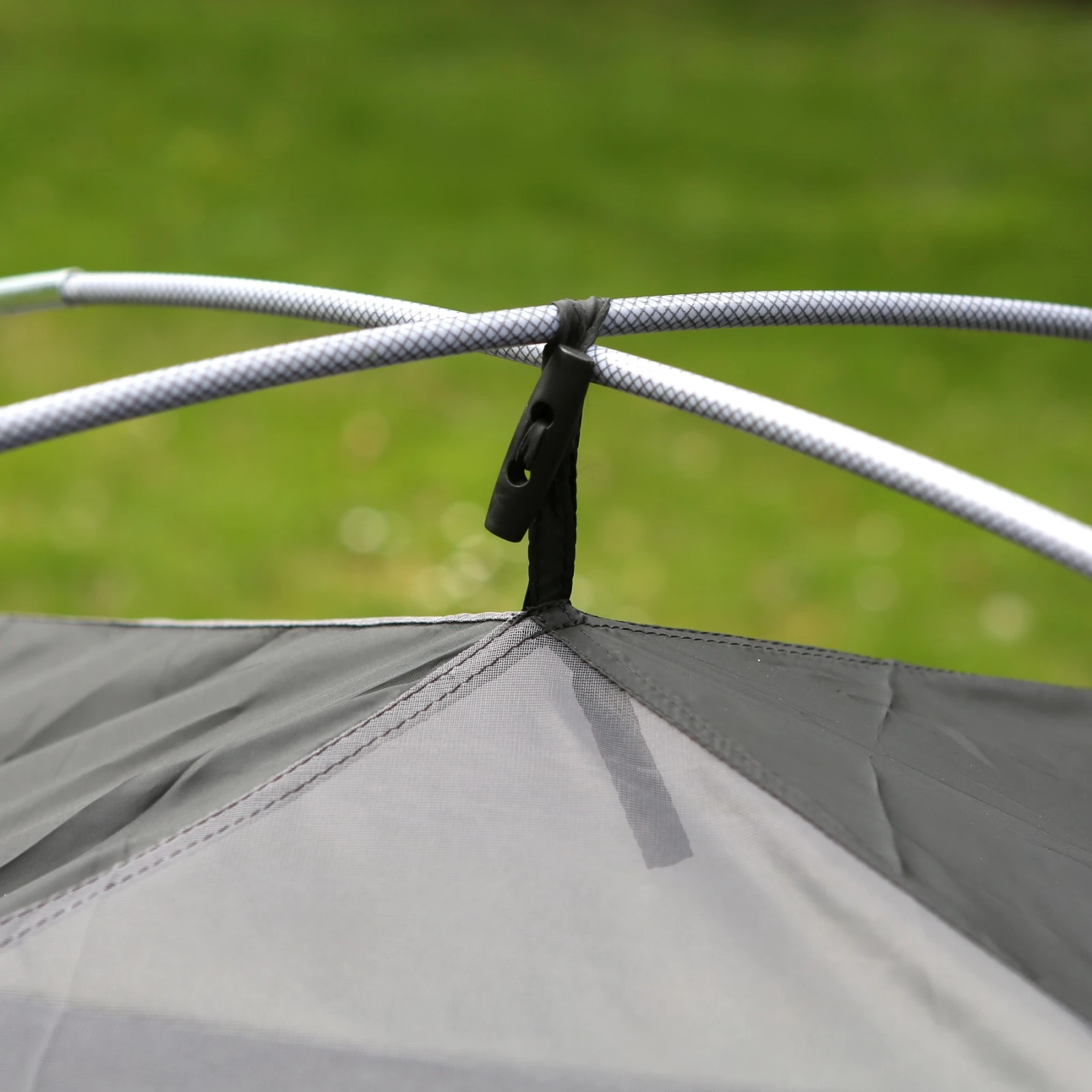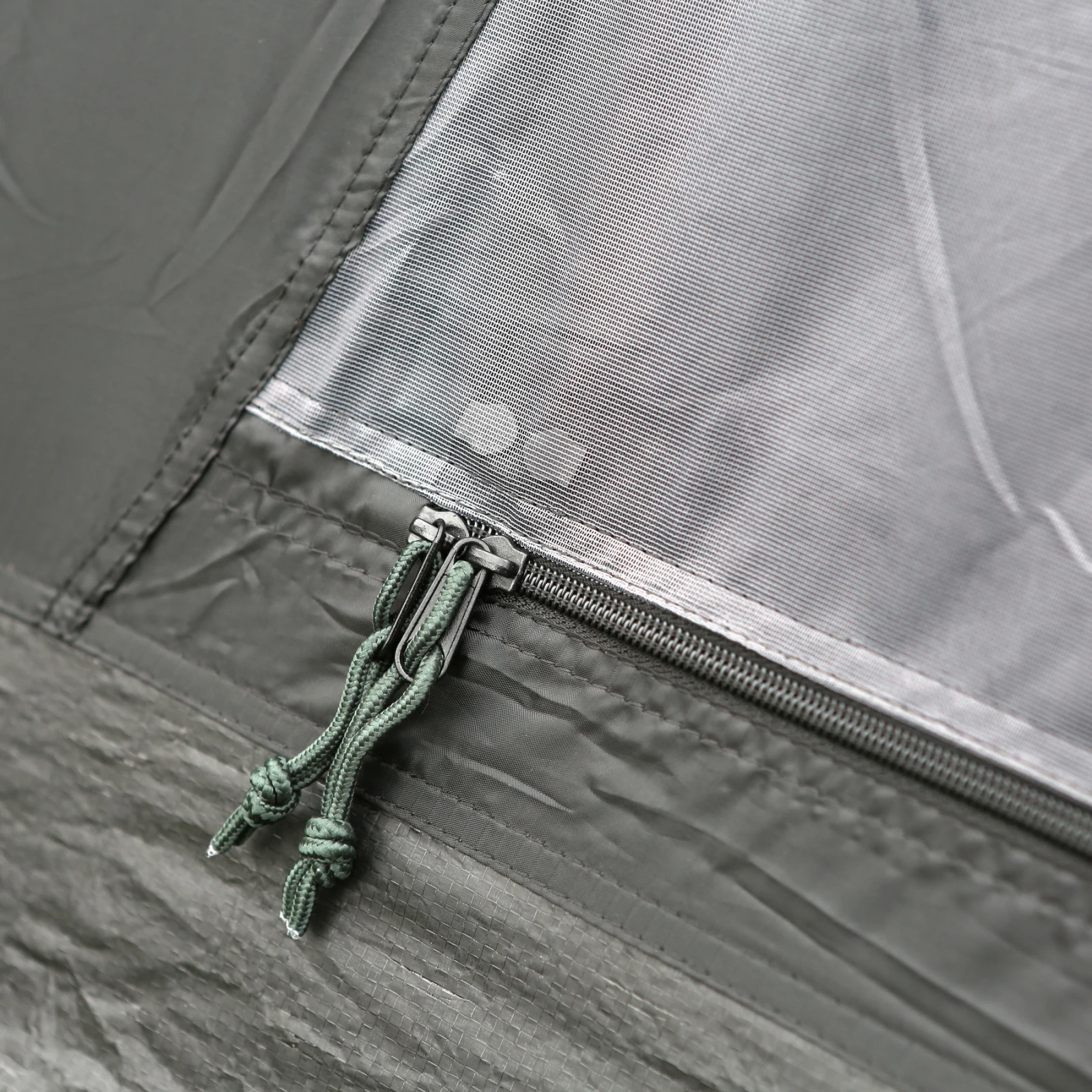 Der Schlafbereich des Zelts wird mit einer speziellen Black AM -Behandlung versehen, die dazu beiträgt, die Sonnenenergie auf der Oberfläche des Überzelts zu speichern und so eine angenehme Temperatur im Zeltaufrechtzuerhalten. Die ersten Sonnenstrahlen am Morgen machen Ihnen nichts aus und Sie können einen längeren Schlaf genießen.