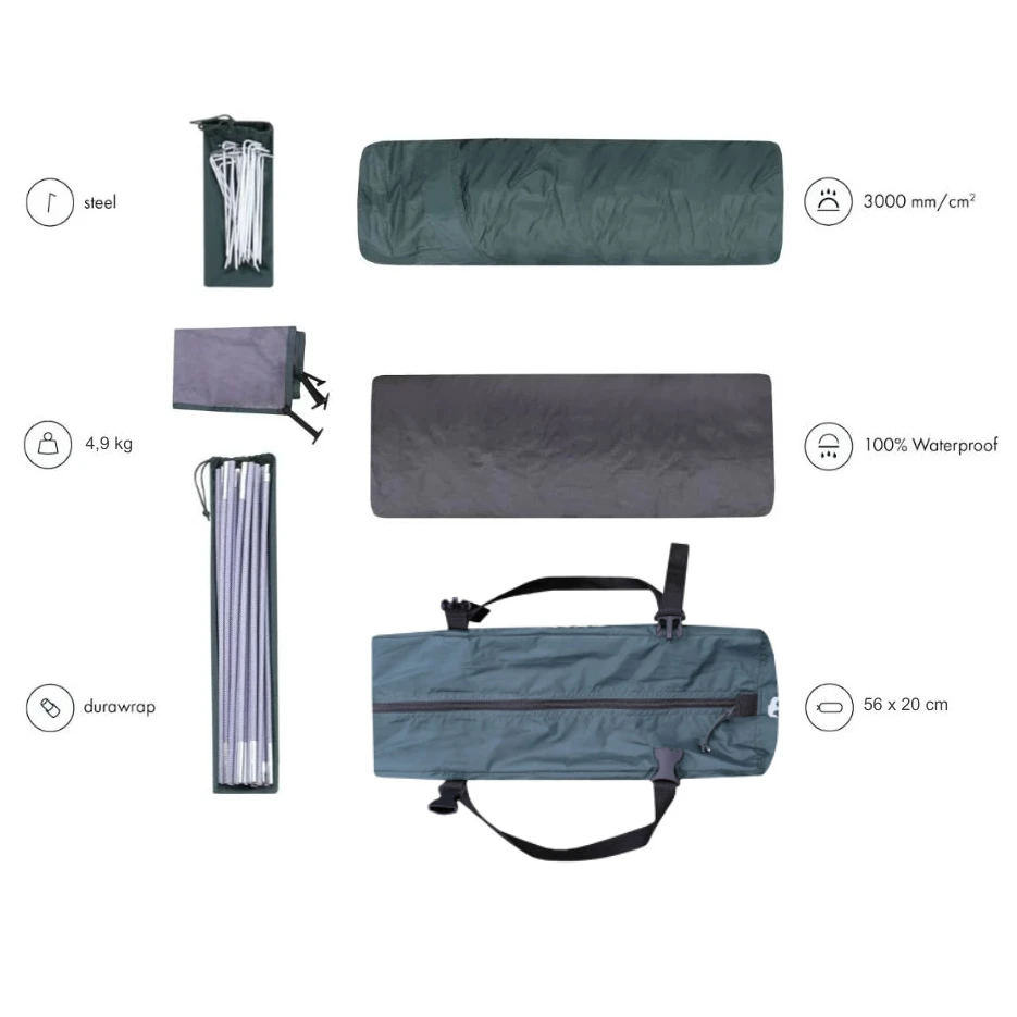Tropico = der oberer Teil eines Doppelwandzeltes. Charakterisiert durch Wassersäule = die Fähigkeit des Materials, dem Wasserdruck standzuhalten. Angegeben in Millimetern.