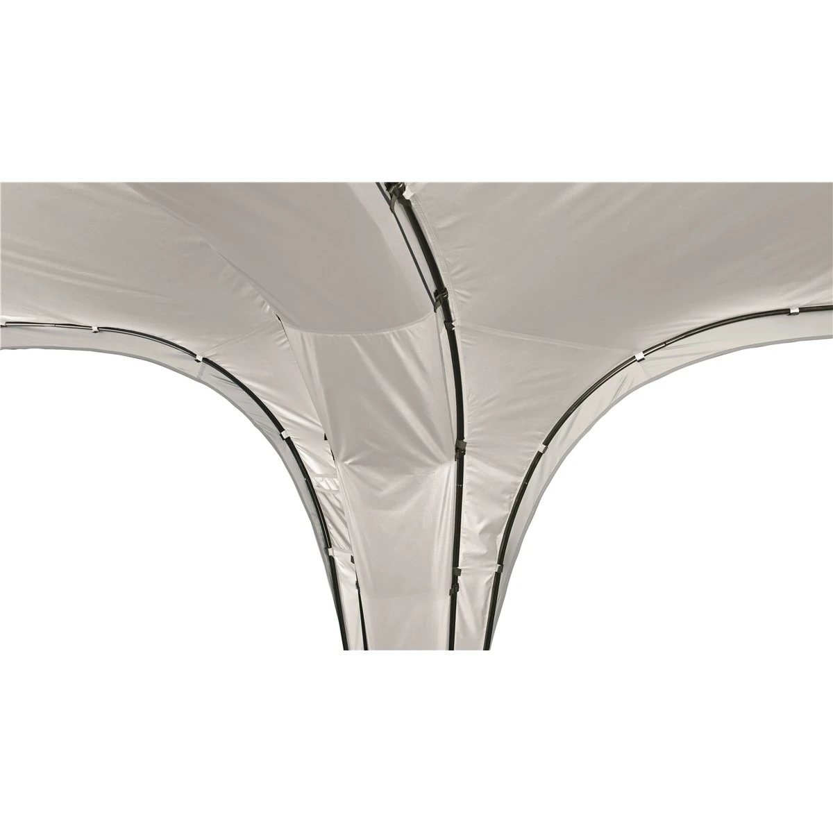 Mit dem Partyzeltverbinder der Marke Outwell lässt sich durch die Verbindung zweier Zelte ein deutlich größeres Dach schaffen. Dadurch haben Sie deutlich mehr Platz für mehr Personen. Der Verbinder besteht aus dem Material Outtex® 1500 Select Silver, welches über eine Wassersäule von 1500 mm verfügt und auf der Innenseite eine Silberbeschichtung aufweist. Diese Beschichtung reflektiert die Wärme zurück in das Zelt und erhöht so die Temperatur im Zeltinneren.