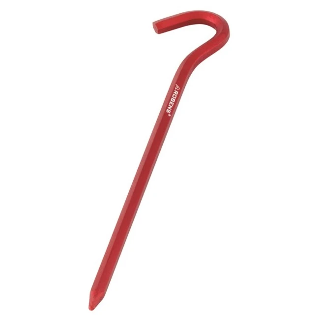 Ein Set aus 6 Aluminium- Heringen mit sechseckigem Querschnitt Hexagon Stake der Marke Robens eignet sich zum Befestigen eines Zeltes auch auf harten Oberflächen. Durch die rote Farbe sind die Stifte gut sichtbar und man stolpert nicht darüber.