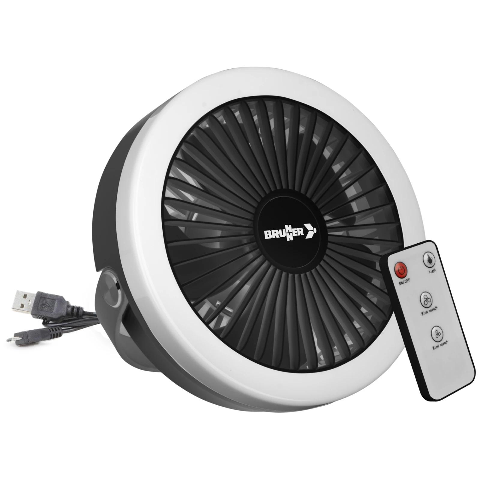 Der Moonbelle RG Ventilator der Marke Brunner bietet die perfekte Lösung für Camping, Zelt, Zuhause und Reisen. Sie werden es sicherlich zu schätzen wissen, dass Moonbelle neben dem Ventilator auch über eine LED -Beleuchtung mit einer Leistung von 60 Lumen verfügt. Mithilfe der Fernbedienung können Sie zwischen drei verschiedenen Lüftergeschwindigkeiten wählen. Natürlich können Sie auch die optimale Helligkeit stufenlos regeln und so für die perfekte Atmosphäre sorgen.